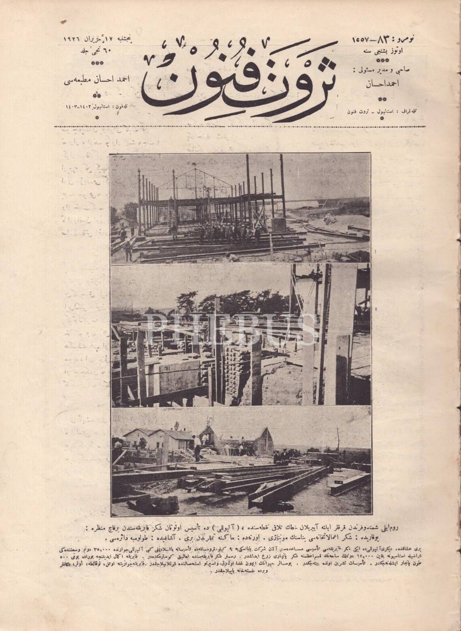 SERVET-İ FÜNUN dergisinin, Alpullu Şeker Fabrikasının inşaatına dair kapak görselli 83. sayısı, 17 Haziran 1926, 24x32 cm