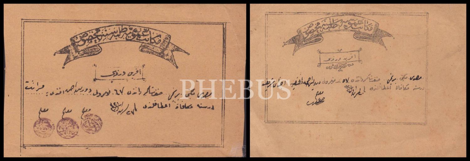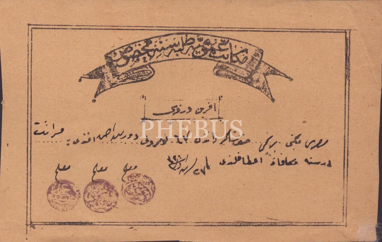 Mekatib-i Umumiye talebesine mahsus aferin kâğıdı, 1320, 11x17 cm (2 adet)