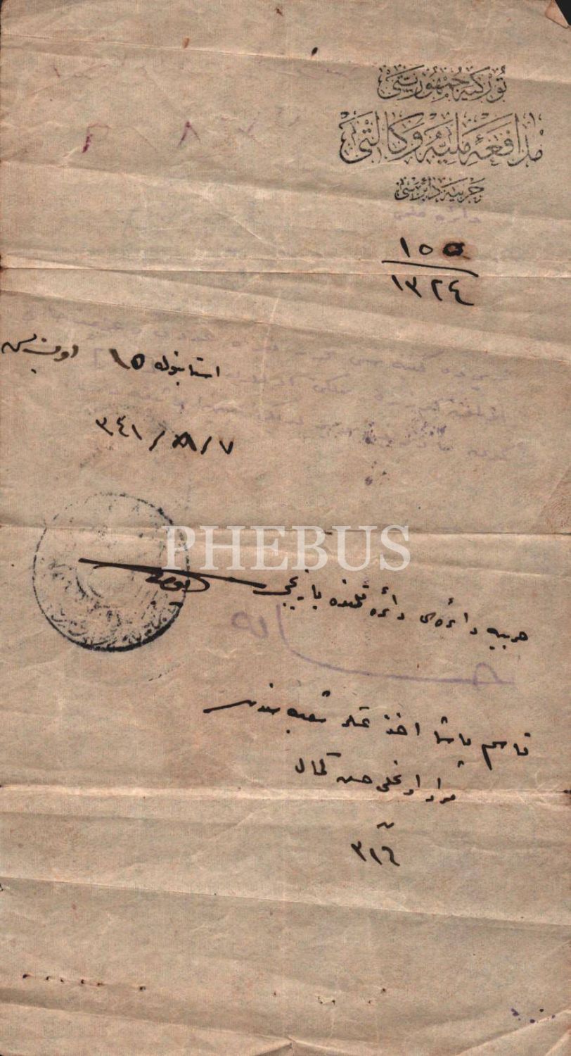 Kasımpaşa asker alım şubesinden Hasan Kemal´e ilişkin T.C. Müdafaa-i Milliye Vekaleti antetli evrak, 7 Ağustos 1241, 17x26 cm