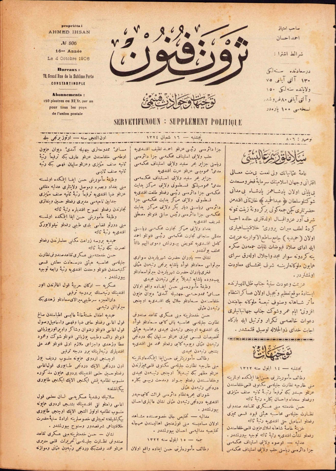 Osmalıca Serveti Fünun gazetesi, hicri 1324 tarihli, 8 sayfa, 24x34 cm