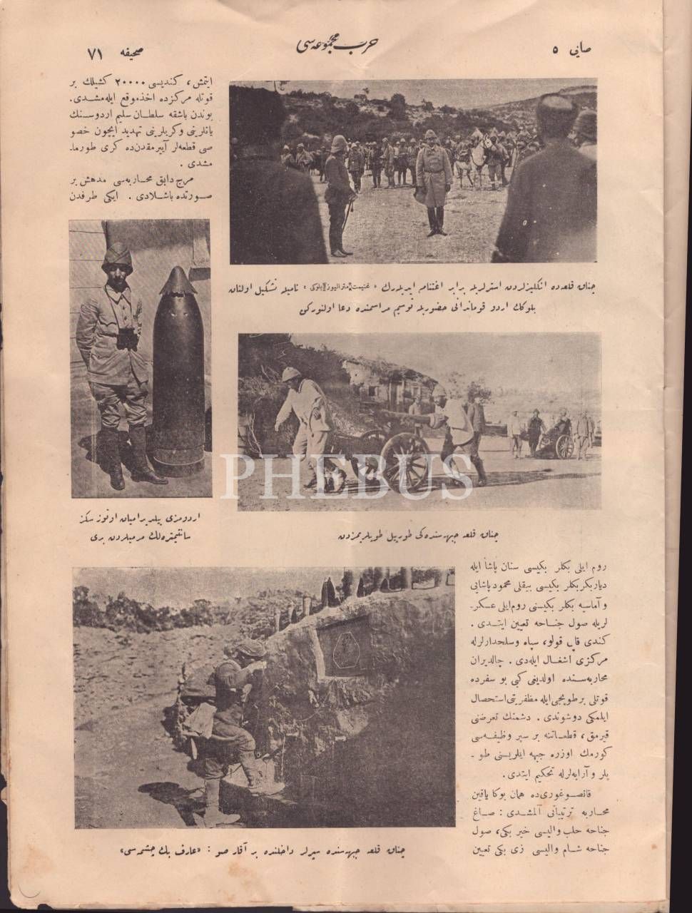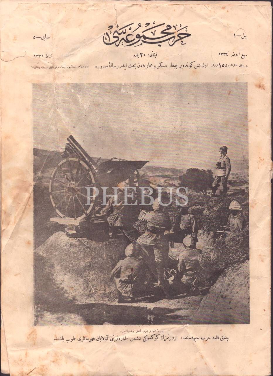 HARB MECMUASI´nın "Çanakkale Harb Cephesinde: ordumuzun gökteki düşman tayyarelerini avlayan kahramanları top başında" başlıklı kapak görseliyle 5. sayısı, Şubat 1331, 24x34 cm