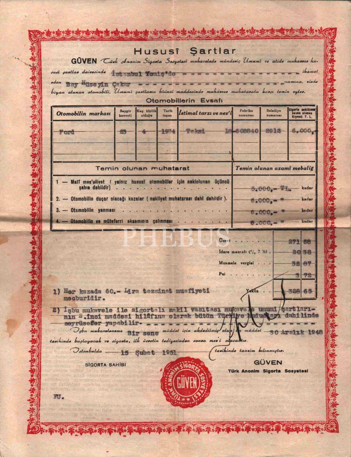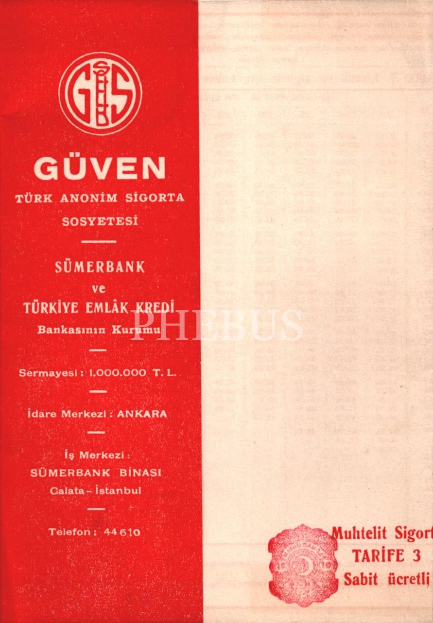 Güven Türk Anonim Sigorta Sosyetesi hayat sigortası sözleşmesi, 1948, 14x20 cm