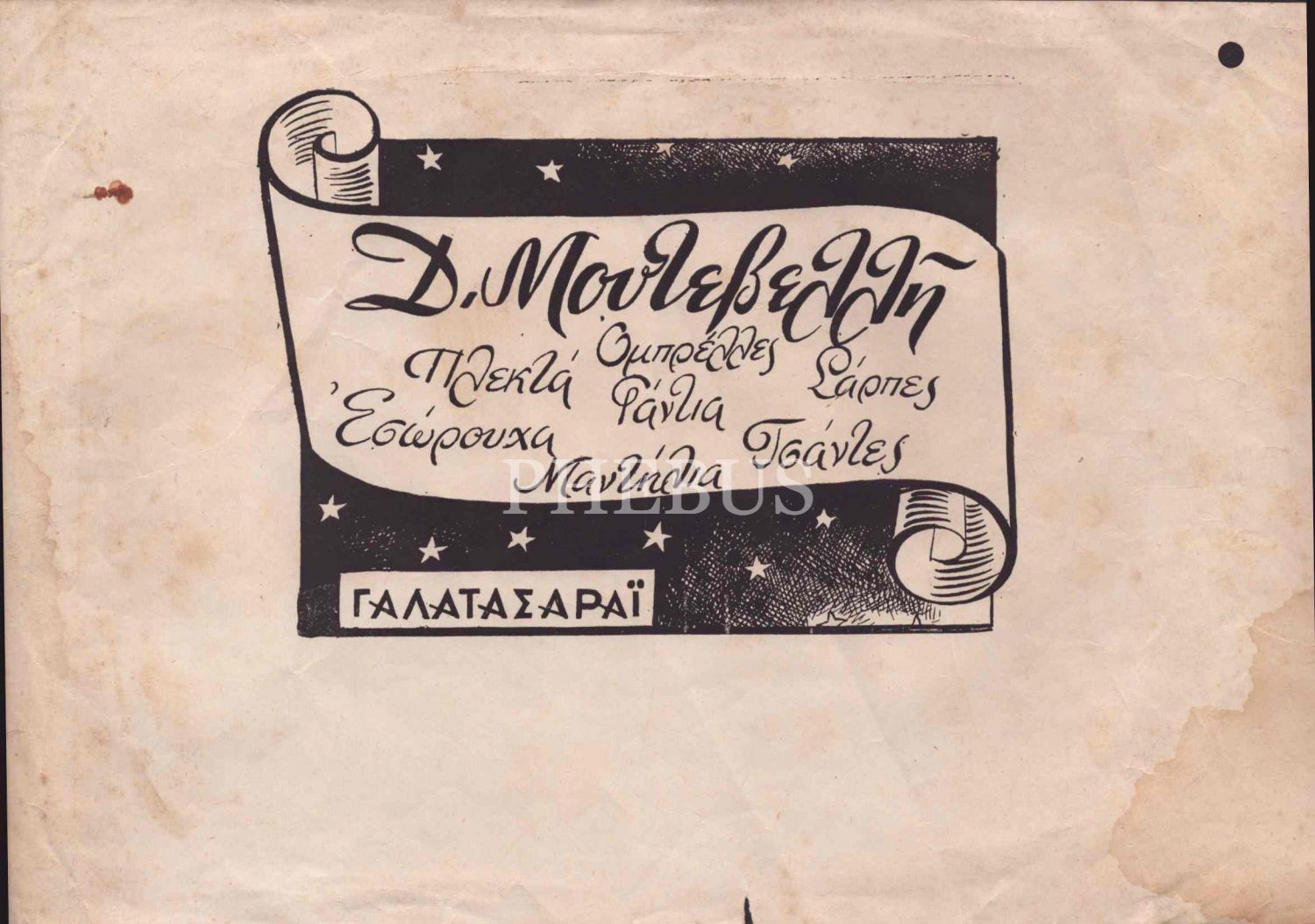 Galata'da bulunan D. Mütevelli mağazasının Rumca açılış ilanı, 21x30 cm