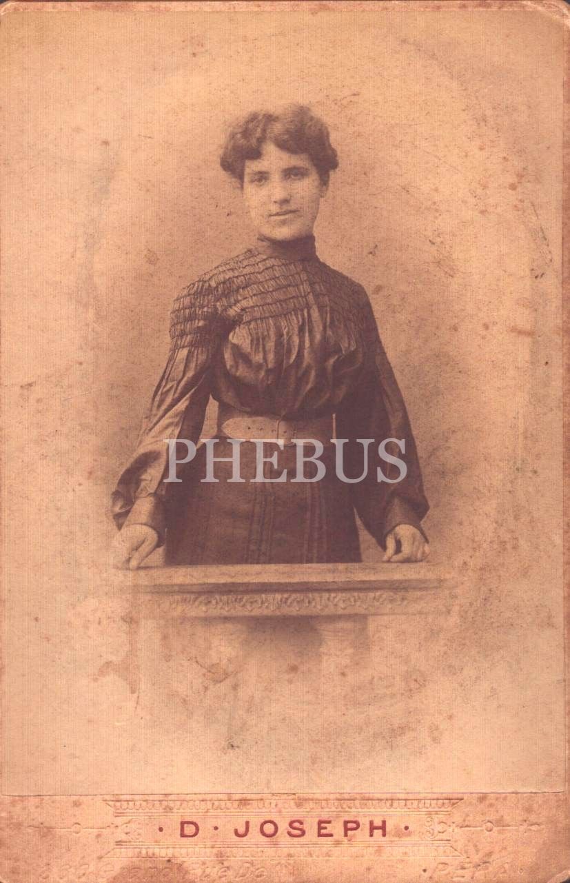 Şık giyimli hanımefendinin kabin fotoğrafı, D. Joseph Fotoğrafhanesi- Constantinople, 10x17 cm