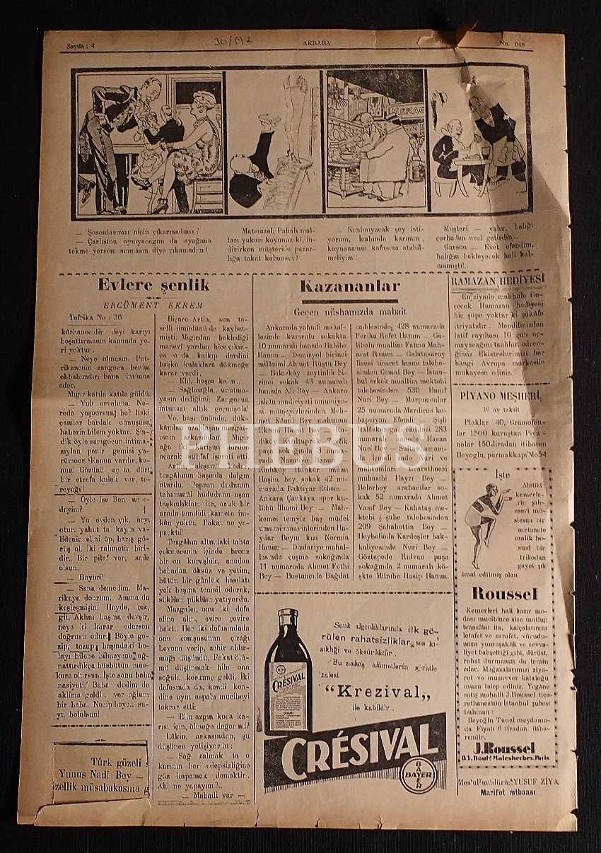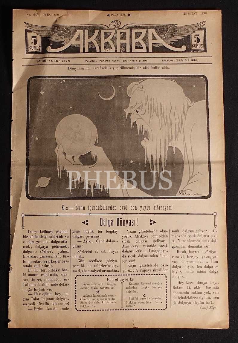 Mizah gazetesi AKBABA´nın 1929 tarihli 13 sayısı, 30x45 cm