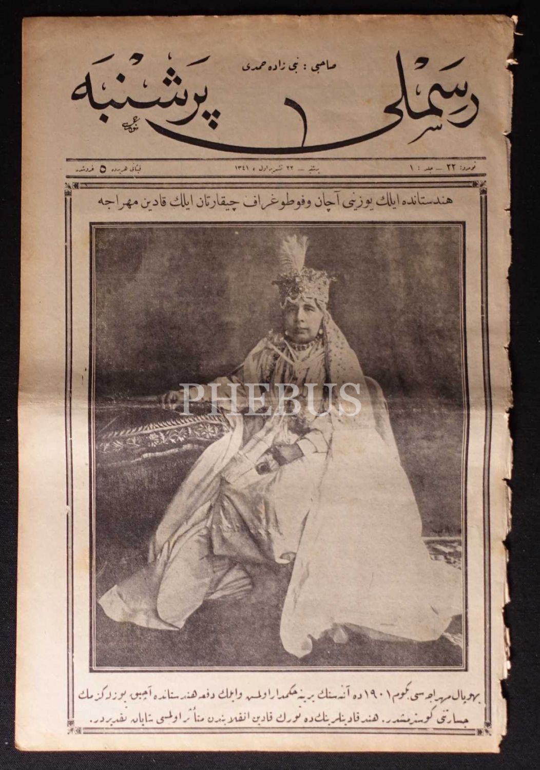 RESİMLİ PERŞENBE gazetesinin 1341 tarihli 5 sayısı, 30x45 cm