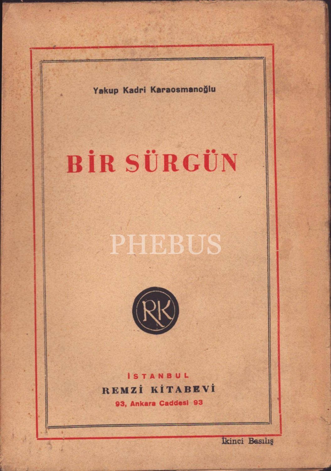 BİR SÜRGÜN, Yakup Kadri Karaosmanoğlu, 1945, Remzi Kitabevi, 254 sayfa