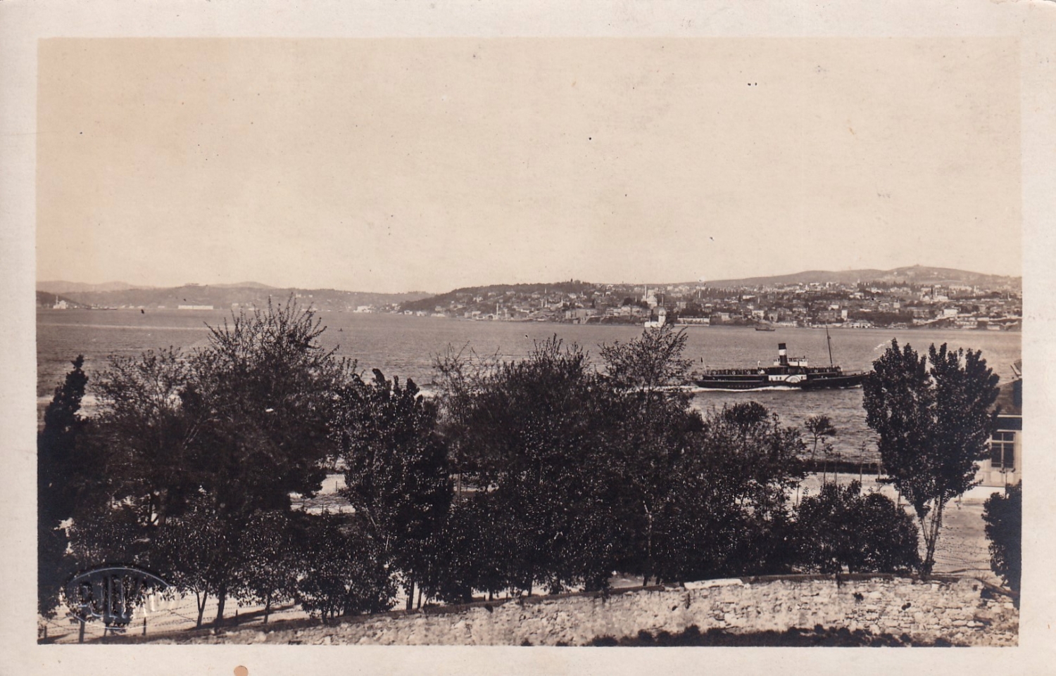 Osmanlı dönemi Boğaz görünümü, yandan çarklı vapur