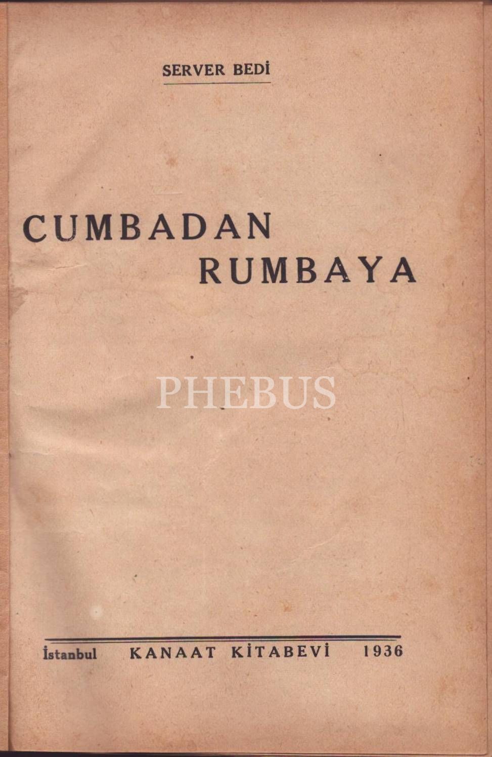CUMBADAN RUMBAYA, Server Bedi (Peyami Safa), 1936, Kanaat Kitabevi, 464 sayfa, birinci baskı