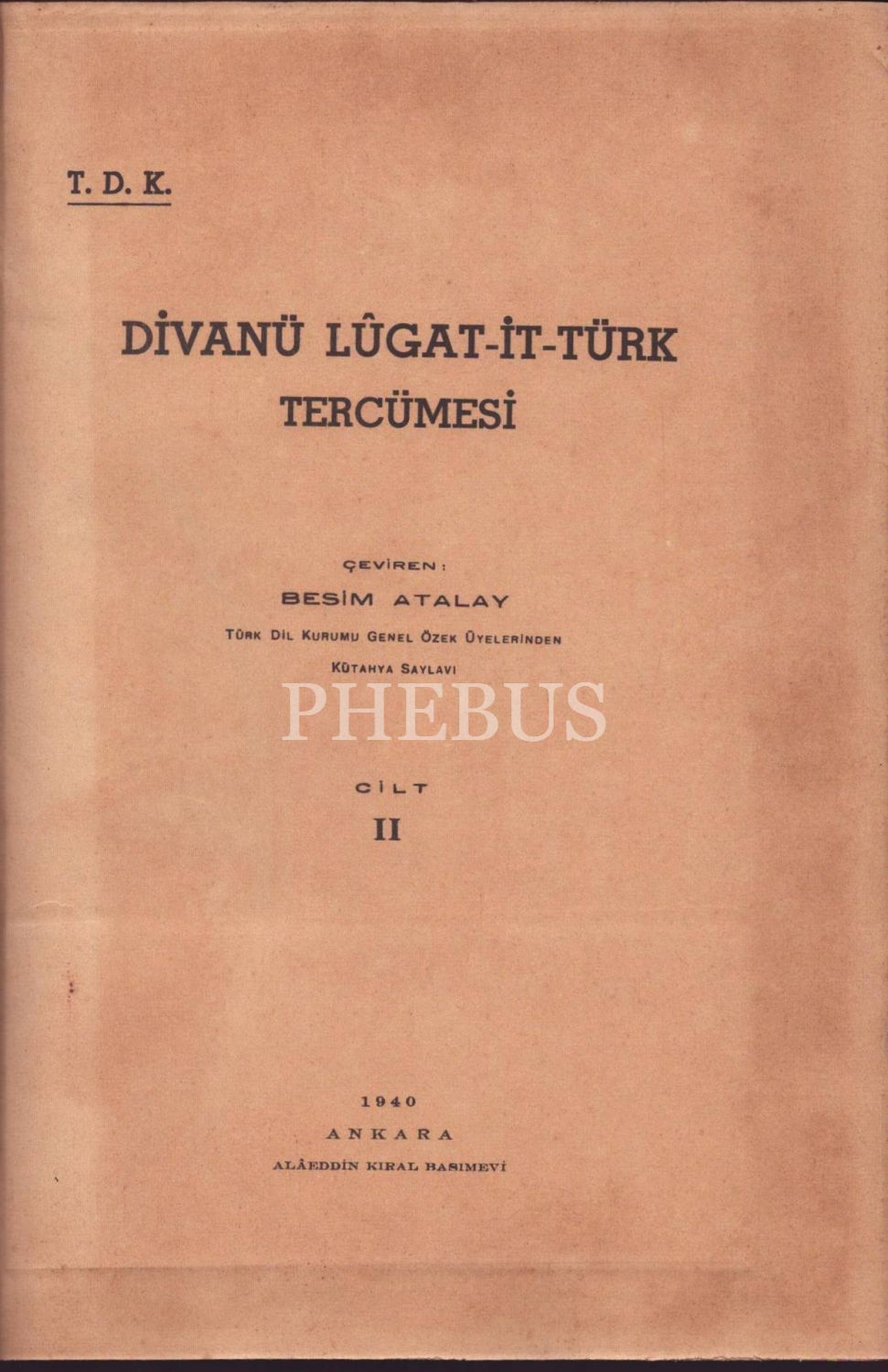 DİVANÜ LUGAT-İT-TÜRK ÇEVİRİSİ (3 cilt takım), çev. Besim Atalay, 1939, TDK Yayınevi, 530 - 366 - 452 sayfa