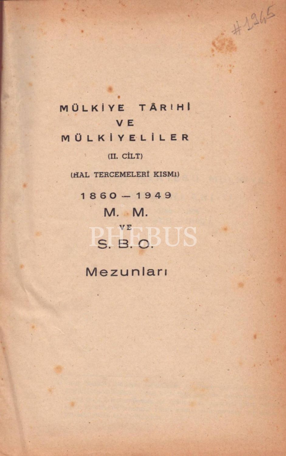 MÜLKİYE TARİHİ VE MÜLKİYELİLER I - II, Mücellitoğlu Ali Çankaya, 1954, Doğuş Matbaası, 736 - 1712 sayfa