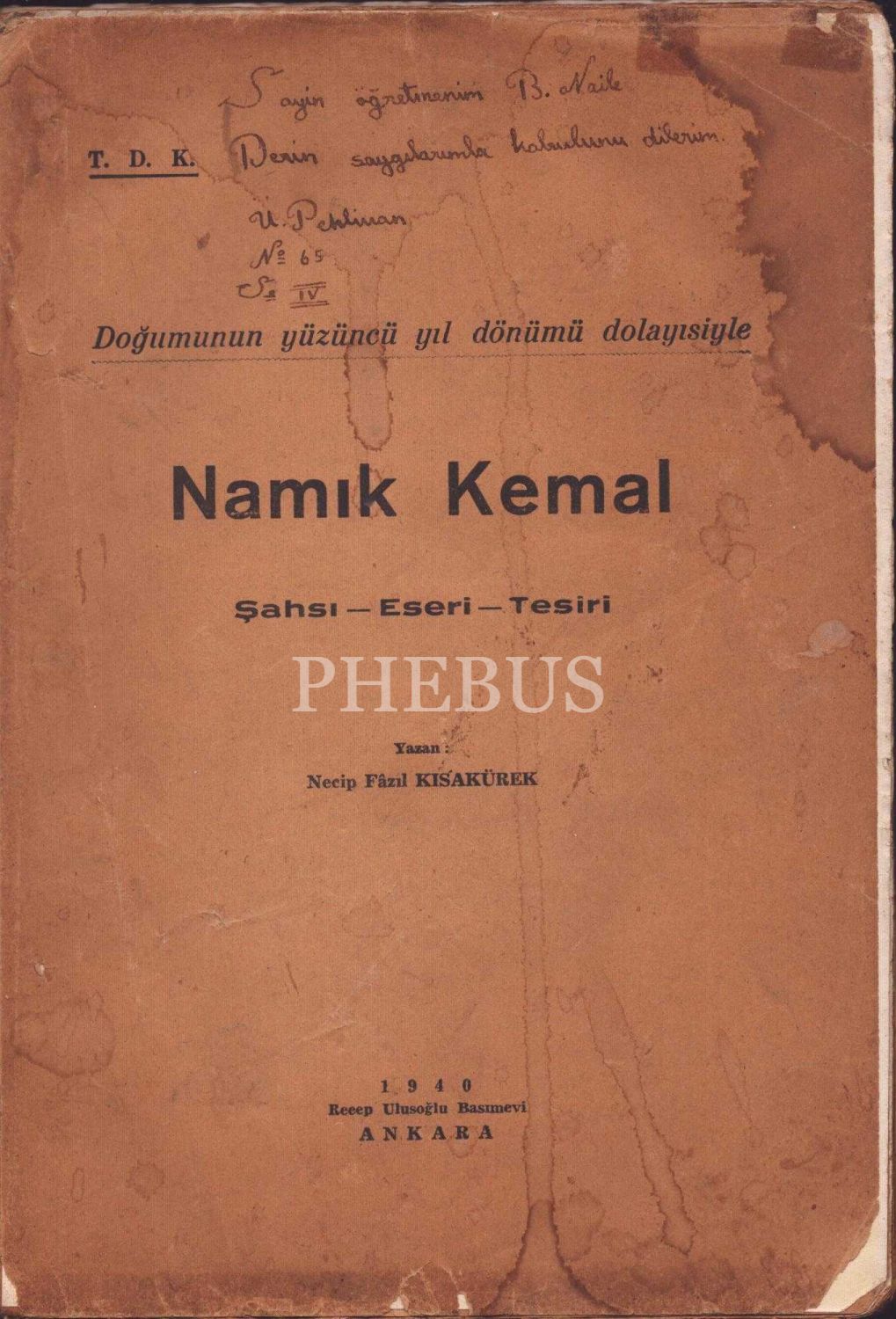 NAMIK KEMAL Şahsı - Eseri - Tesiri, Necip Fazıl Kısakürek, 1940, Recep Ulusoğlu Basımevi, 316 + 88 sayfa