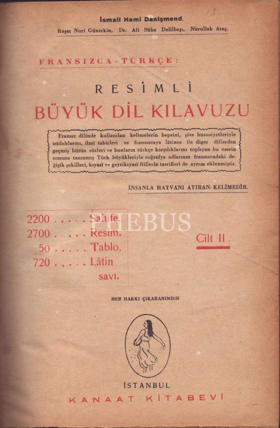 FRANSIZCA - TÜRKÇE RESİMLİ BÜYÜK DİL KILAVUZU, İsmail Hami Danişmend, Reşat Nuri Güntekin, Dr. Ali Süha Delilbaşı, Nurullah Ataç, 1936, Kanaat Kitabevi, 2192 + 10 sayfa