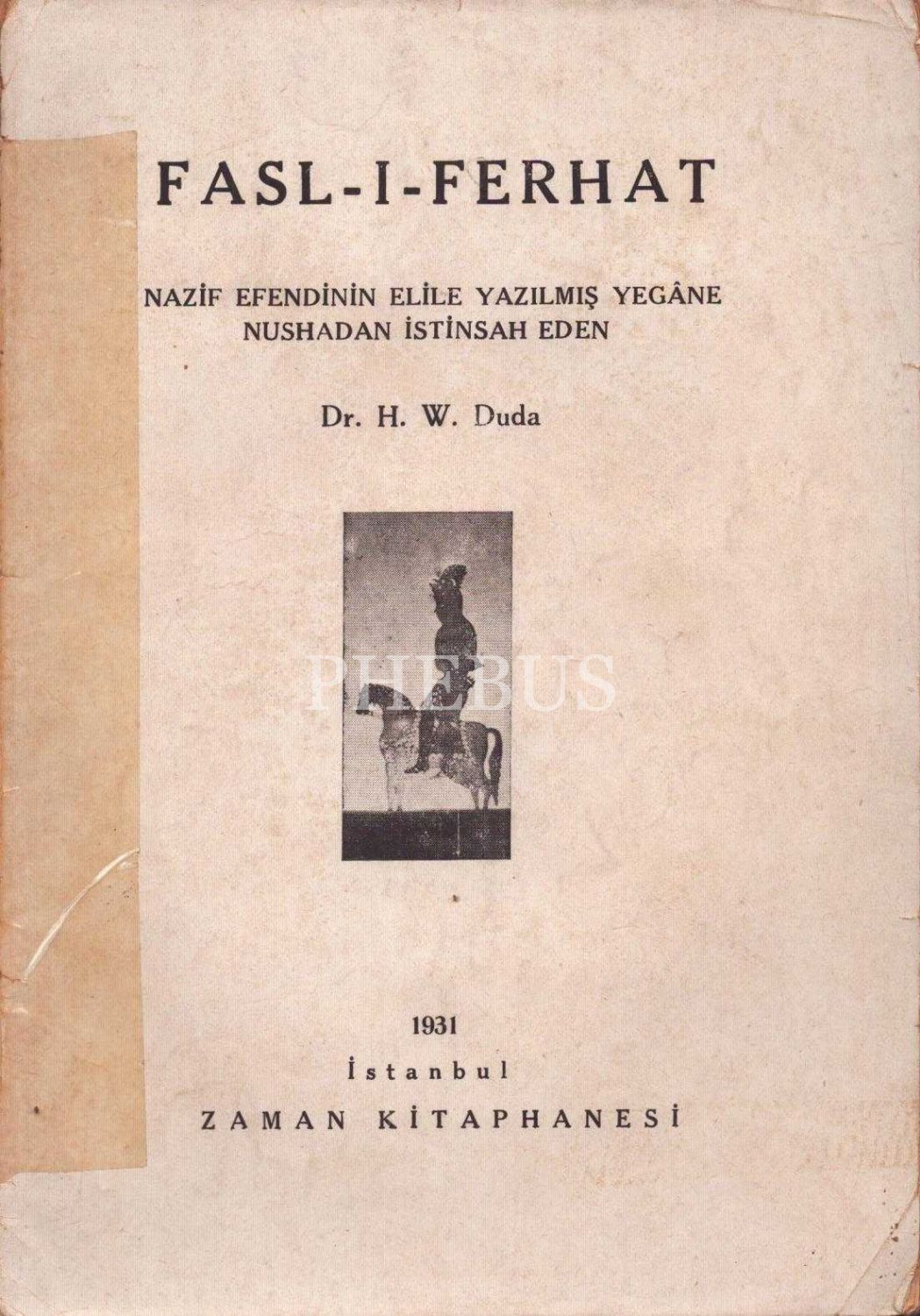 FASL-I FERHAT, Anonim, (Nazif Efendi´nin eliyle yazılmış yegâne nüshadan istinsah eden: Dr. H. W. Duda), 1931, Zaman Kitaphanesi, 48 sayfa