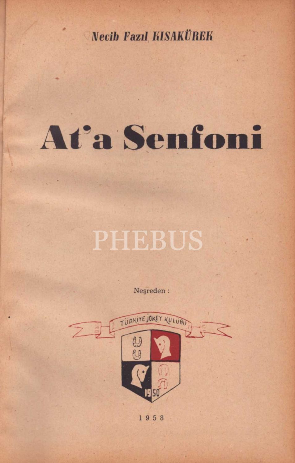 AT´A SENFONİ, Necib Fazıl Kısakürek, 1958, Türkiye Jokey Kulübü, 158 sayfa, birinci baskı