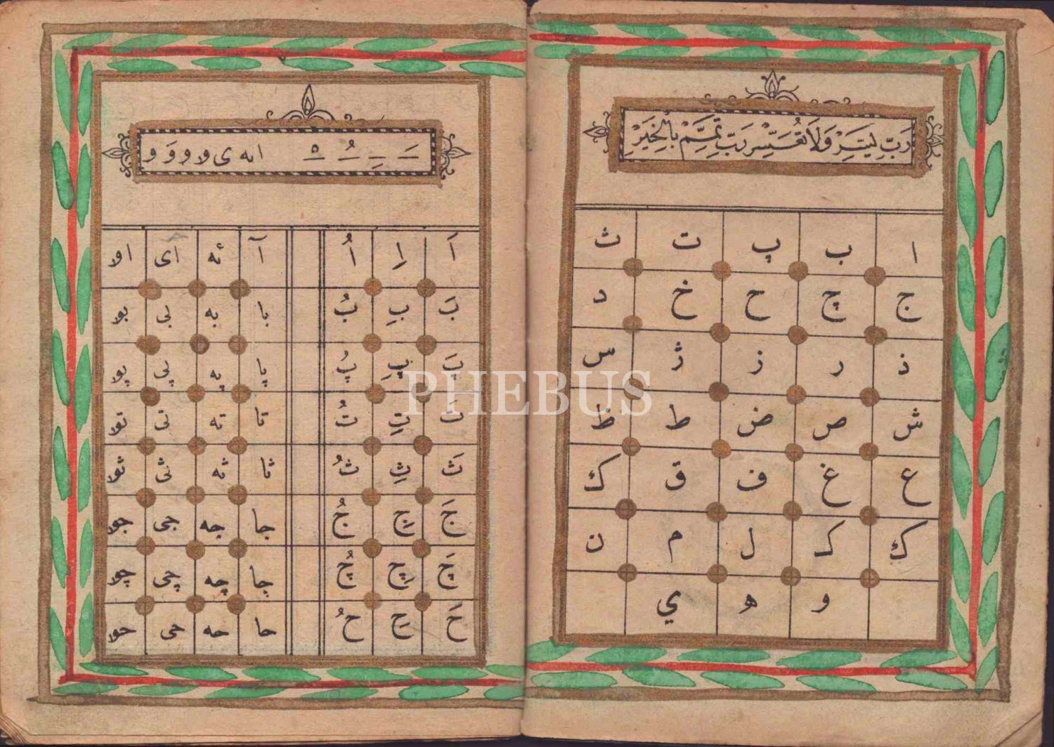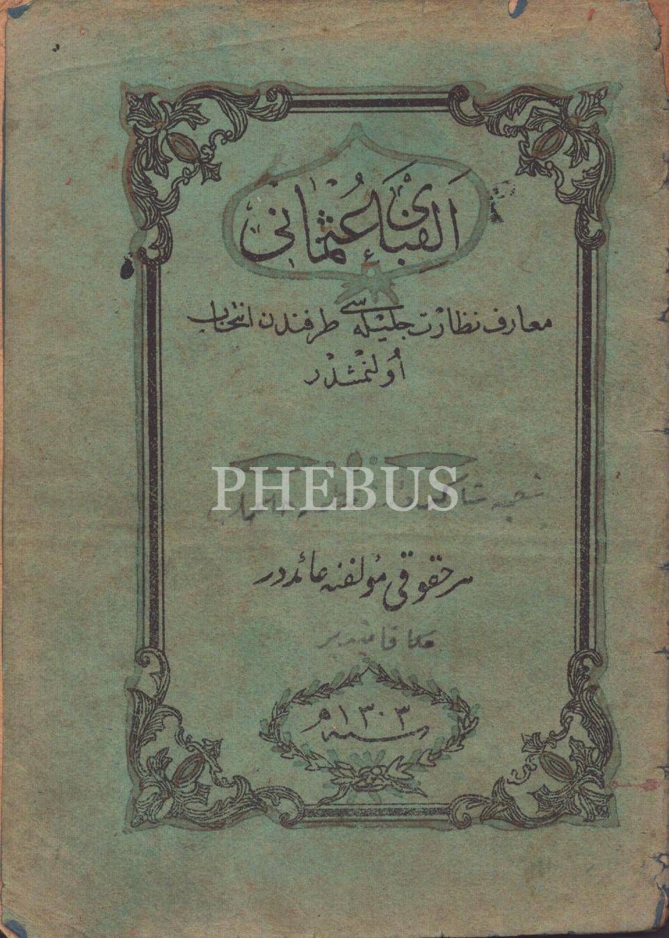 Sıbyân Mekteblerine Mahsûs, altın cetvelli ve süslemeli ELİFBÂ-YI OSMÂNÎ, Selim Sabit, 1303, 46 s., 13x17 cm