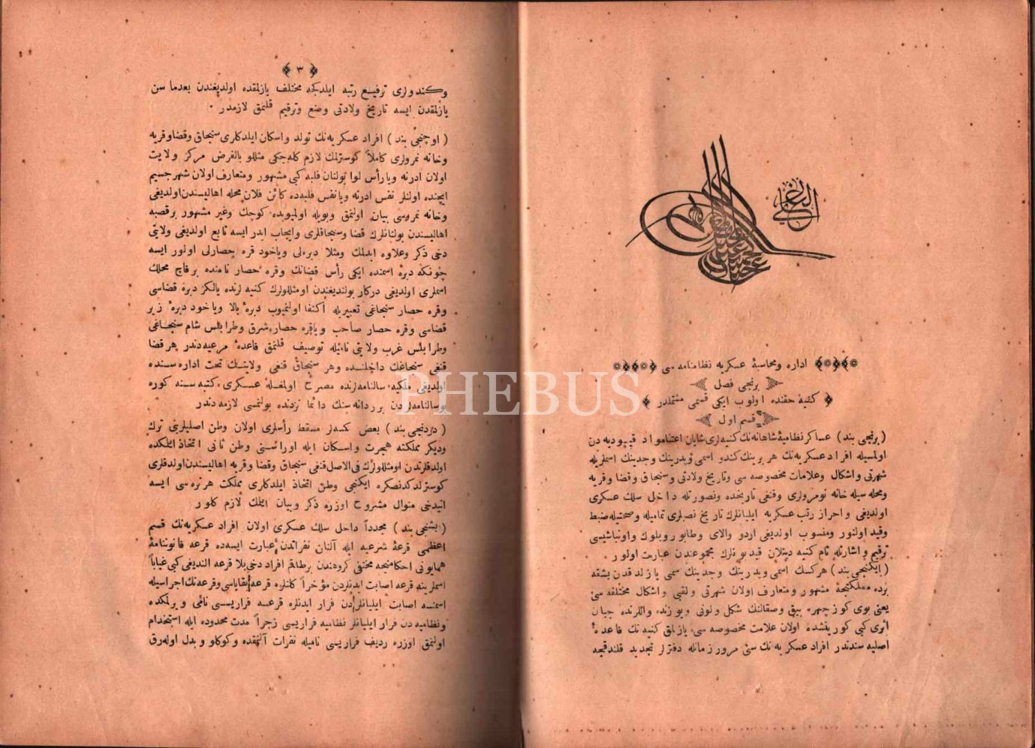 Tuğralı ve hilalli cildinde İDÂRE VE MUHÂSEBE-İ ASKERİYYE NİZÂMNÂMESİ, 462 s., 21x28 cm