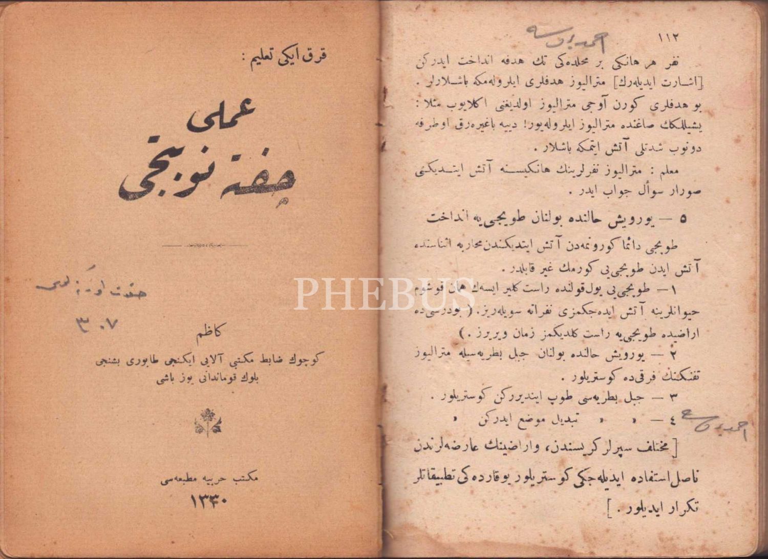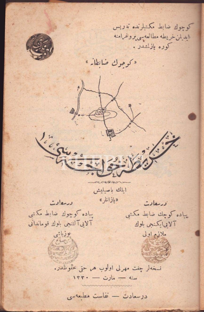 NİŞÂN MUALLİMLERİNE AMELÎ KILAVUZ, Süleyman Süruri, Matbaa-i Hayriye ve Şürekası, İstanbul 1330, 112 s.; AMELÎ ÇİFTE NÖBETÇİ, Kâzım, Mekteb-i Harbiyye Matbaası, 1330, 120 s.; KÜÇÜK ZÂBİTÂNA MAHSÛS- HARİTA KIRAATİ HAKINDA NAZARÎ VE AMELÎ TA´LÎMLER, Ahmed Subhi, Mekteb-i Harbiye Matbaası, İstanbul 1325, 46 s.; KÜÇÜK ZÂBİTÂNA HARİTA HOCASI, yazanlar: Mülazım-ı Evvel-Yüzbaşı, Nefaset Matbaası, İstanbul 1330, 61 s.; AMELÎ VE NAZARÎ KROKİ AHZI, Halid Hakkı, Turan Matbaası, Trabzon 1339, 30 s., 12x17 cm