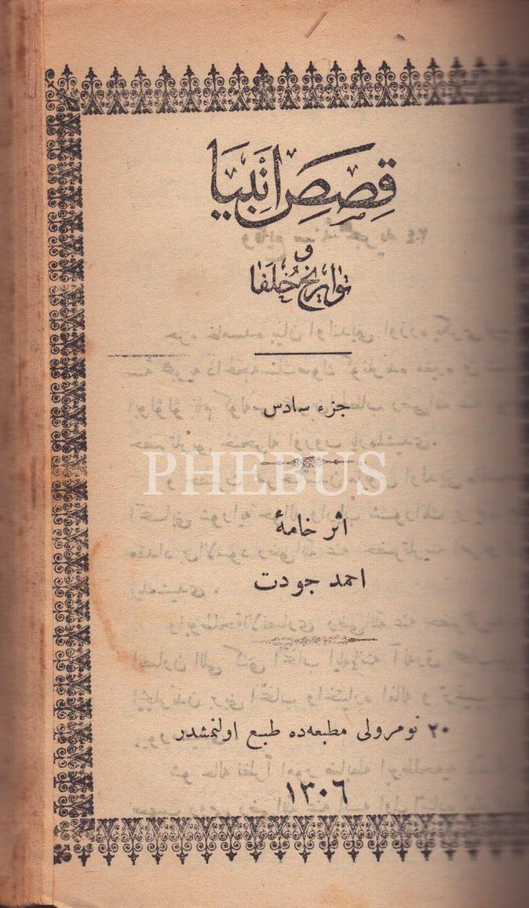 KISAS-I ENBİYÂ VE TEVÂRÎH-İ HULEFÂ (6 Kısım), Ahmed Cevdet, İstanbul 1303-1306, 519+362+150 s. 13x18 cm