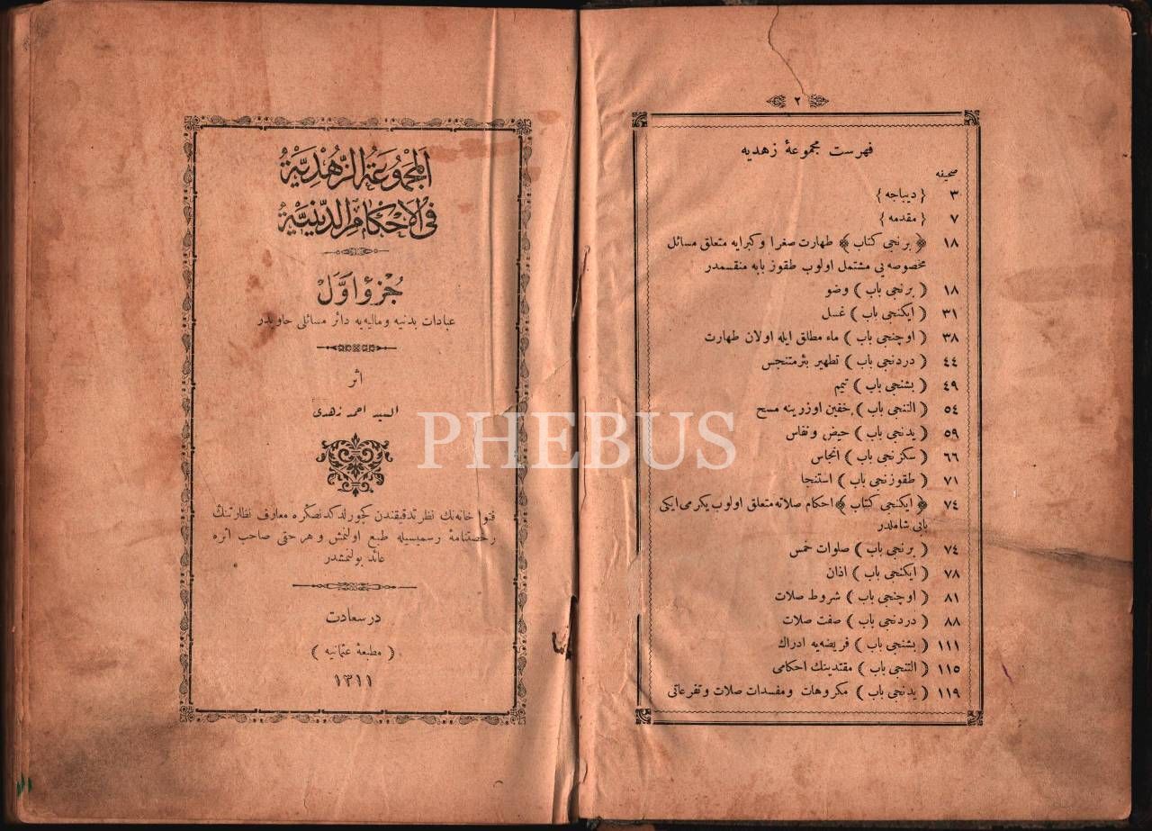 EL-MECMÛATÜ´Z-ZÜHDİYYE FÎ AHKÂMİ´D-DÎNİYYE (1. Kısım), Seyyid Ahmed Zühdi, Osmaniye Matbaası, İstanbul 1311, 318 s., 17x24 cm