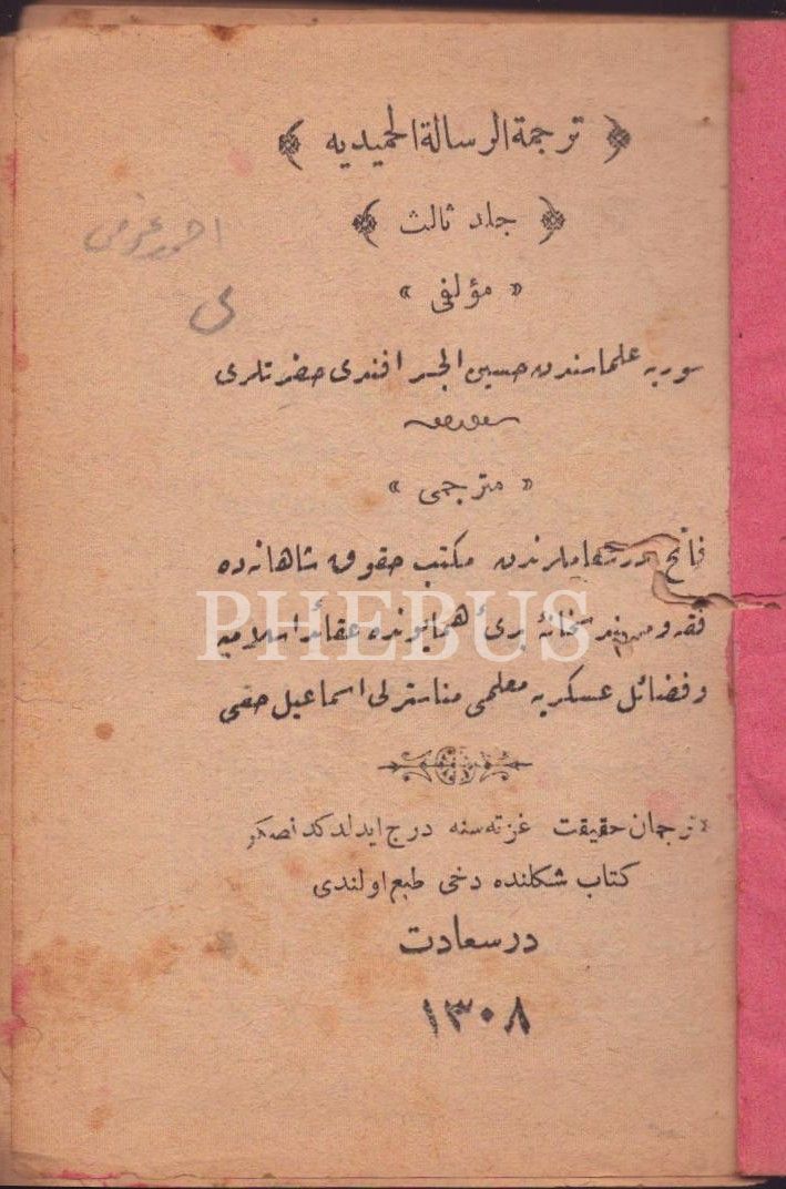 Osmanlı armalı ve hilalli cildinde TERCÜMETÜ´R-RİSÂLETİ´L-HAMÎDİYYE (3. Cilt), Hüseyin el-Cisr Efendi, çev. Manastırlı İsmail Hakkı, İstanbul 1308, 737 s., 10x14 cm