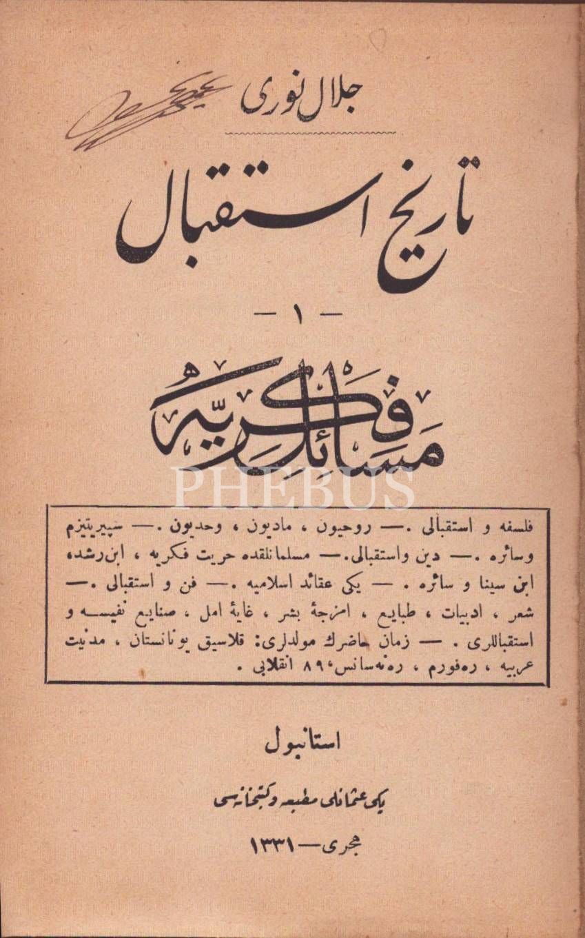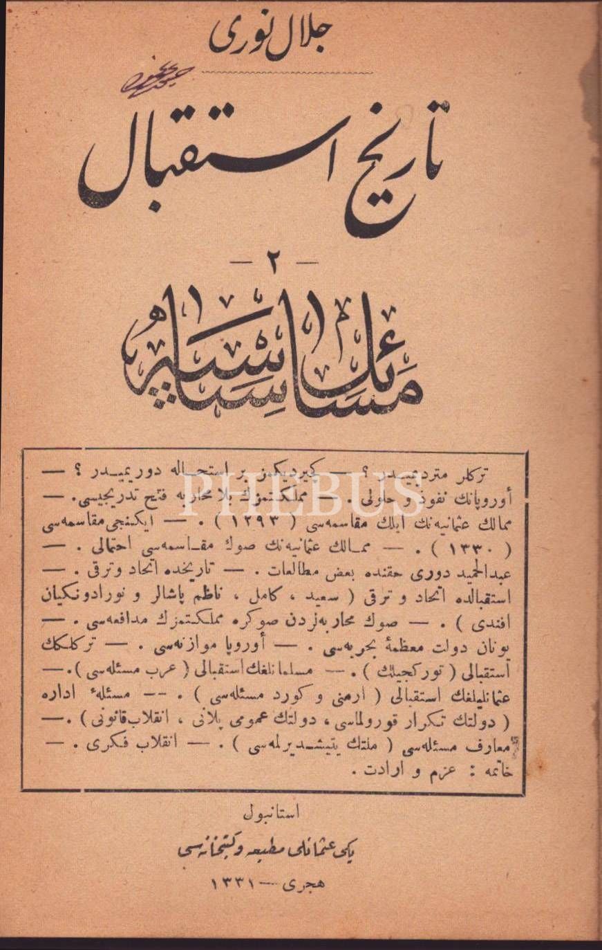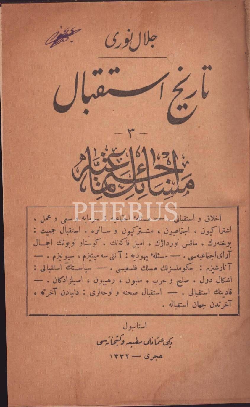 TÂRÎH-İ İSTİKBÂL- 3 Cilt: Mesâil-i Fikriyye, Siyâsiyye ve İctimâiyye, Celal Nuri [İleri], Yeni Osmanlı Matbaa ve Kütübhanesi, İstanbul 1331-32, 171+212+164 s., 13x18 cm