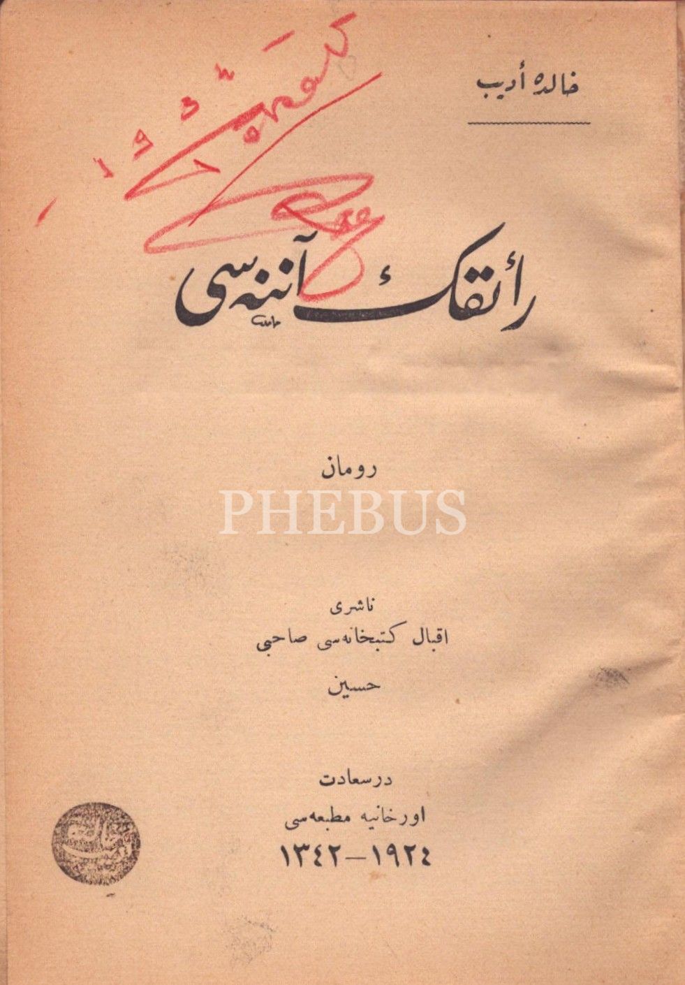RÂİK´İN ANNESİ (Roman), Halide Edib [Adıvar], Orhaniye Matbaası, İstanbul 1924, 75 s., 14x19 cm