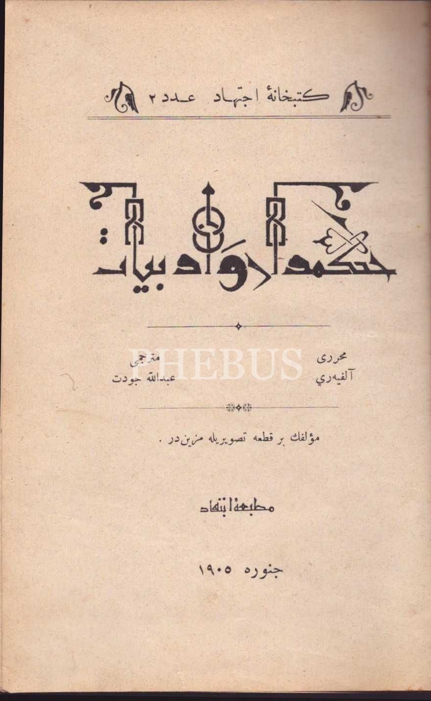 HÜKÜMDÂR VE EDEBİYYÂT, [Vittorio] Alfieri, çev. Abdullah Cevdet, İctihad Matbaası, Cenevre 1905, 340 s., 13x19 cm