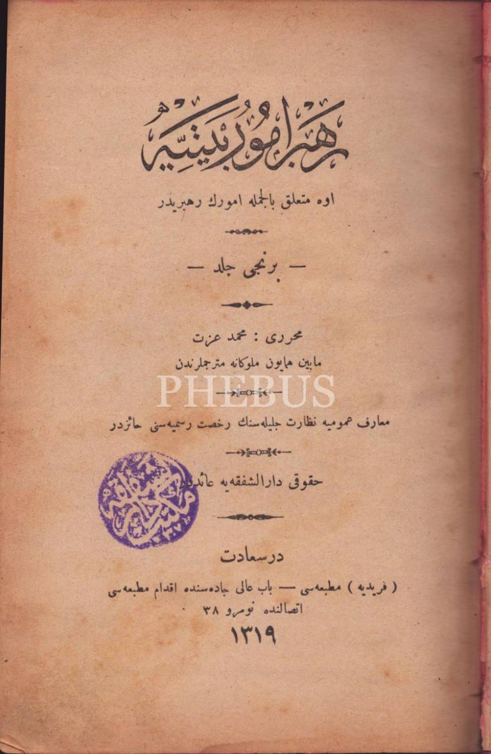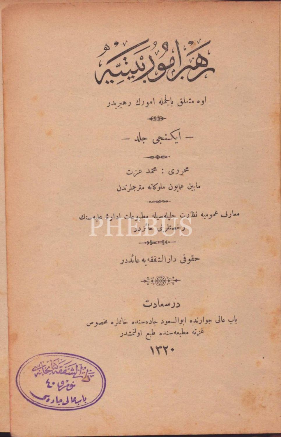 REHBER-İ UMÛR-I BEYTİYYE (Ev İşleri Rehberi- 2 Cilt), Mehmed İzzet, Feridiye ve Hanımlar Mahsus Gazete matbaaları, İstanbul 1319-20, 527+528 s., 14x20 cm