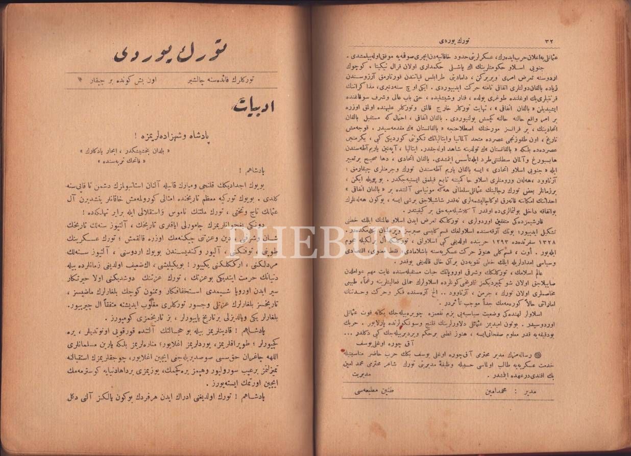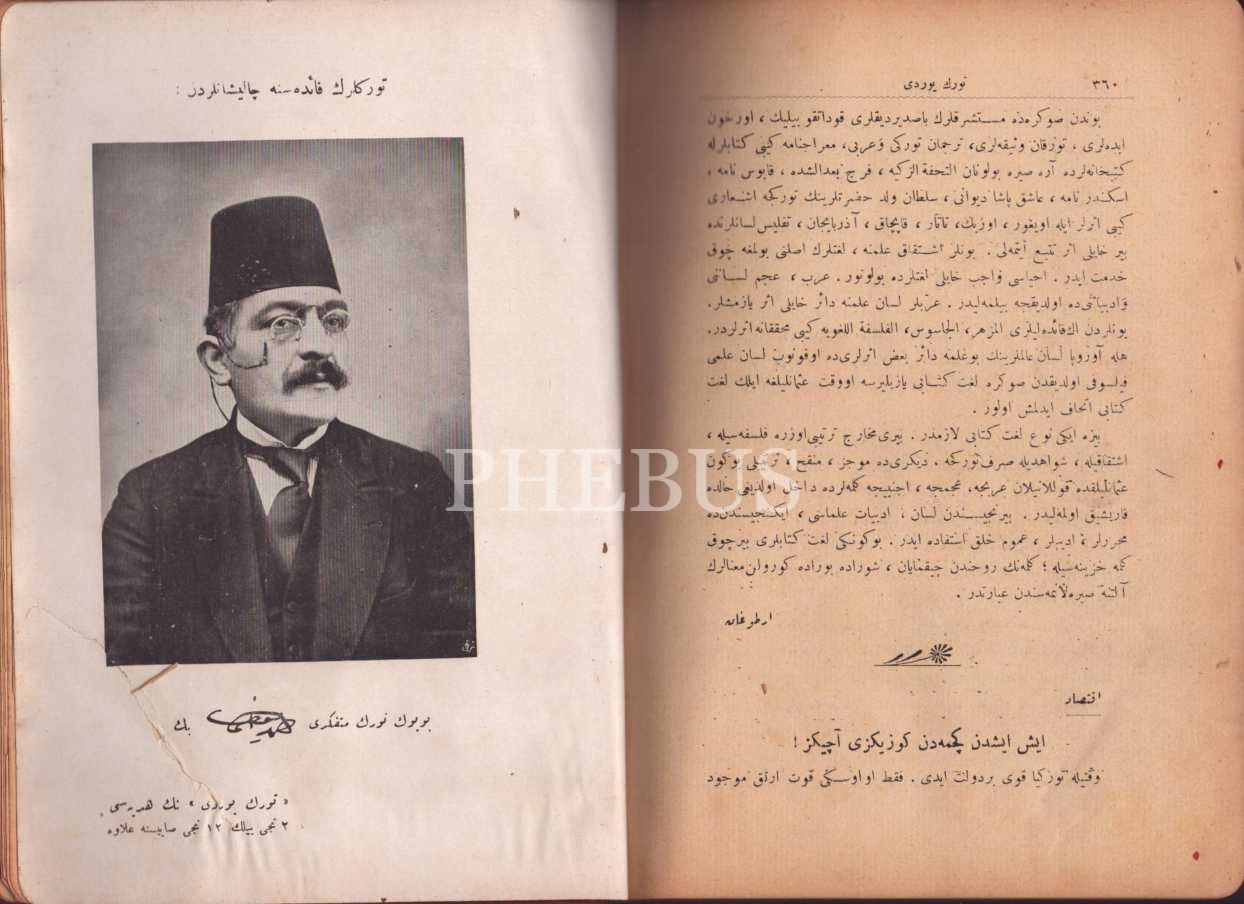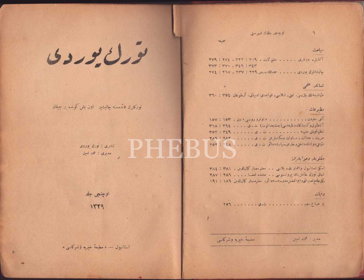Meşrutiyet temalı ve ay yıldızlı cildinde, "Türklerin Faidesine Çalışır On Beş Günde Bir Çıkar" TÜRK YURDU dergisi (3. Cilt), Matbaa-i Hayriye ve Şürekası, İstanbul 1329, 384 s., 18x24 cm