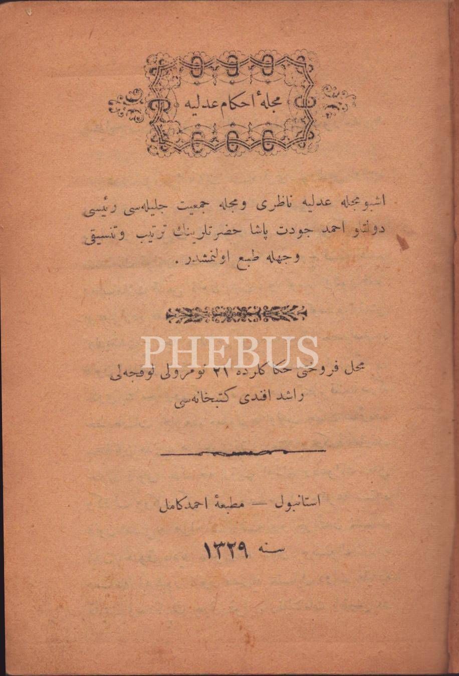 MECELLE-İ AHKÂM-I ADLİYYE, Ahmed Cevdet Paşa, Ahmed Kâmil Matbaası, İstanbul 1329, 627 s., 13x18 cm