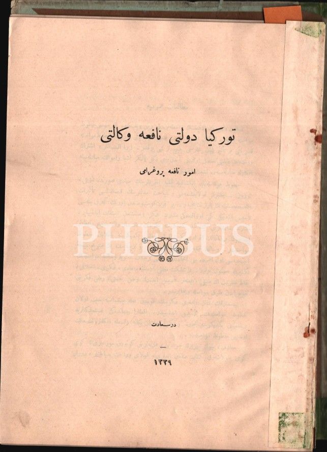 TÜRKİYE DEVLETİ NÂFİA VEKÂLETİ UMÛR-I NÂFİA PROGRAMI, İstanbul 1339, 25 s., 20x26 cm
