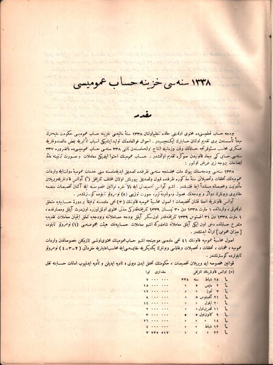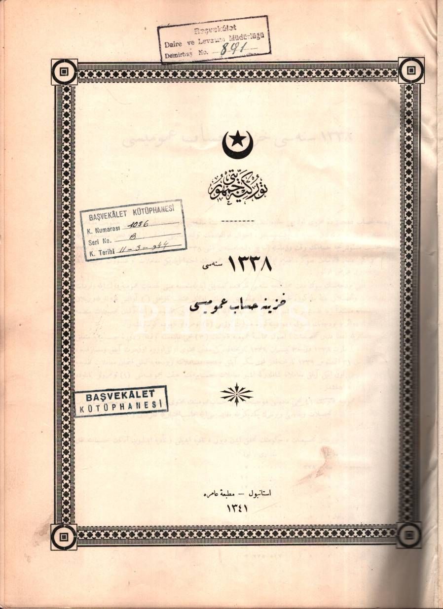1338 SENESİ HAZÎNE HESÂB-I UMÛMÎSİ, Amire Matbaası, İstanbul 1341, 386 s., 25x33 cm
