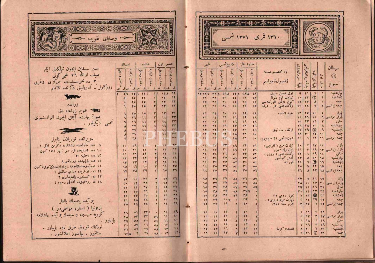 1271-72 ve 1310-11 Seneleri İçin TAKVÎM-İ EBUZZİYA, İstanbul, 264 s., 14x20 cm