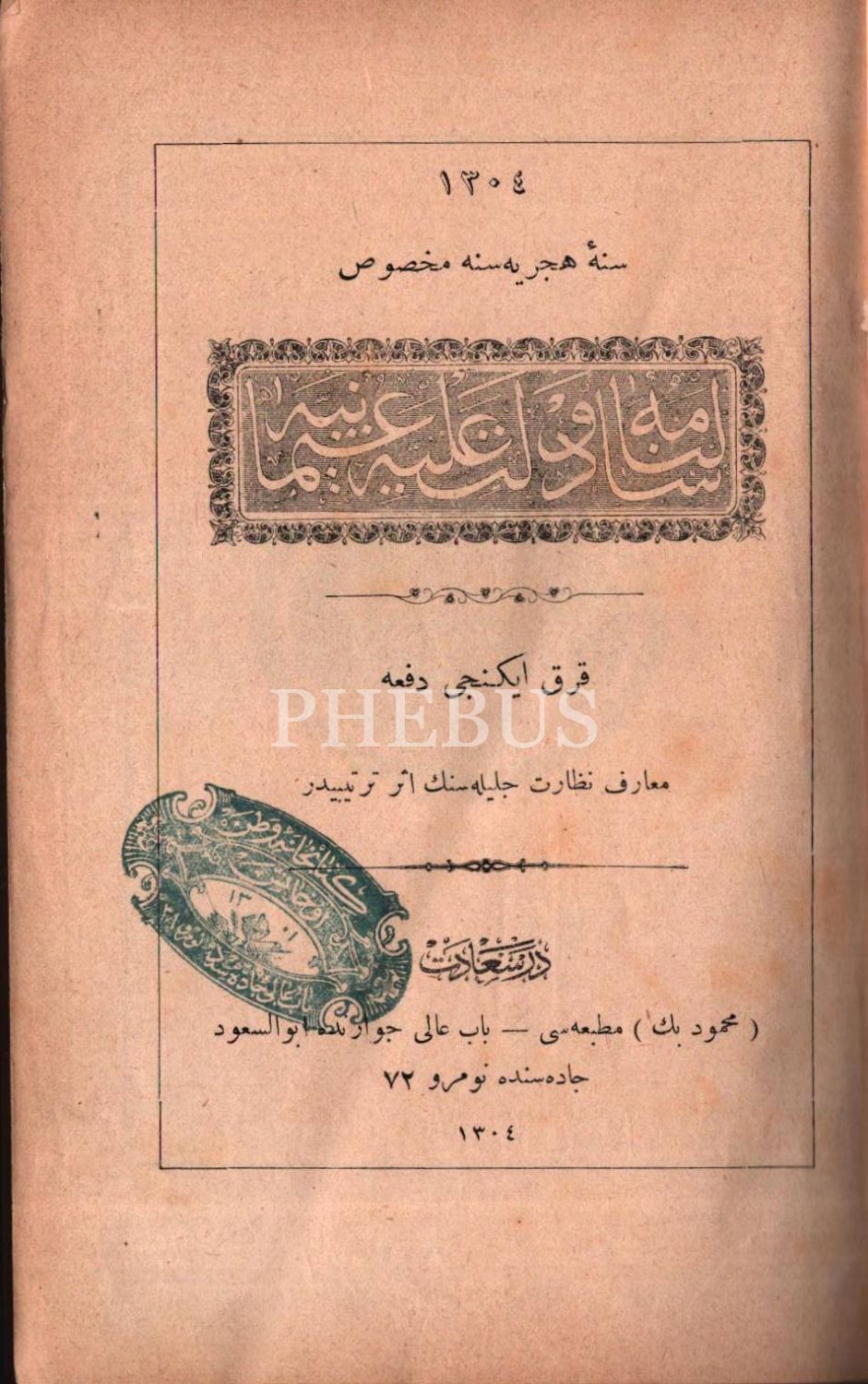 1304 Sene-i Hicriyyesine Mahsûs SÂLNÂME-İ DEVLET-İ ALİYYE-İ OSMÂNÎ, Mahmud Bey Matbaası, İstanbul 1304, 469 s., 14x20 cm