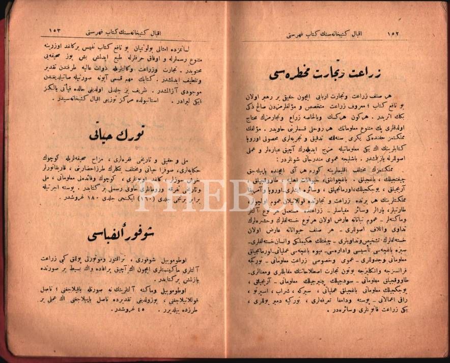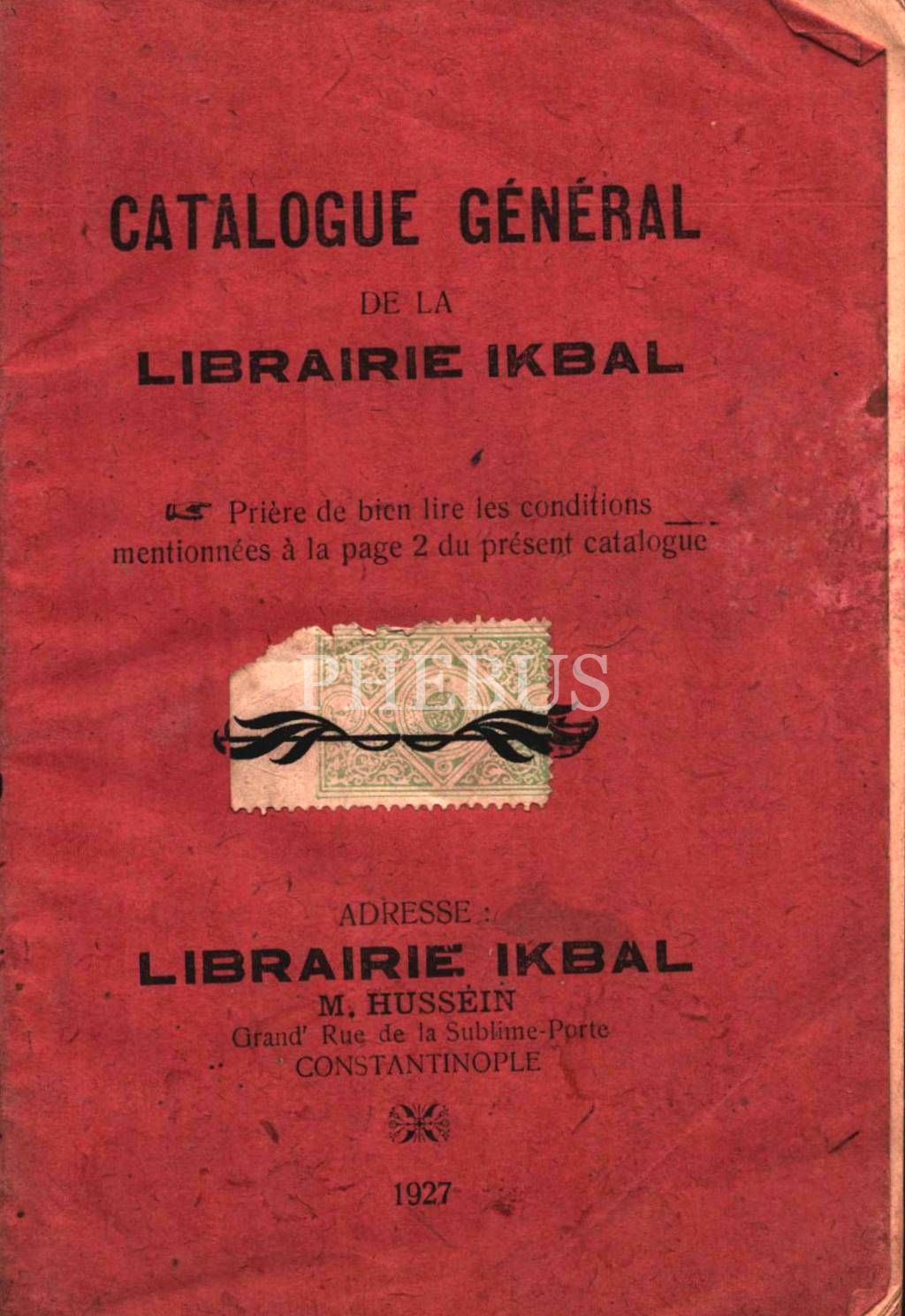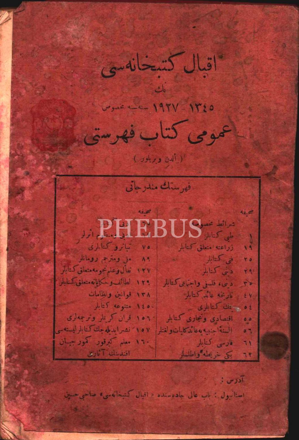 İKBÂL KÜTÜBHÂNESİ´nin 1345-1927 Senesine Mahsûs UMÛMÎ KİTÂB FİHRİSTİ (Elden Verilen), İstanbul 1927, 159 s., 13x20 cm