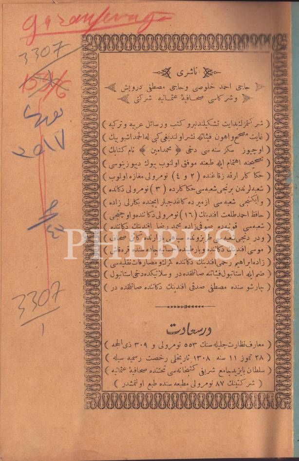 HÂŞİYETÜ MUHAMMED EMÎN ALÂ HÂŞİYET-İ İSÂMÜDDÎN, Sahafiye-i Osmaniye Şirketi Matbaası, İstanbul 1310, 520 s., 17x24 cm