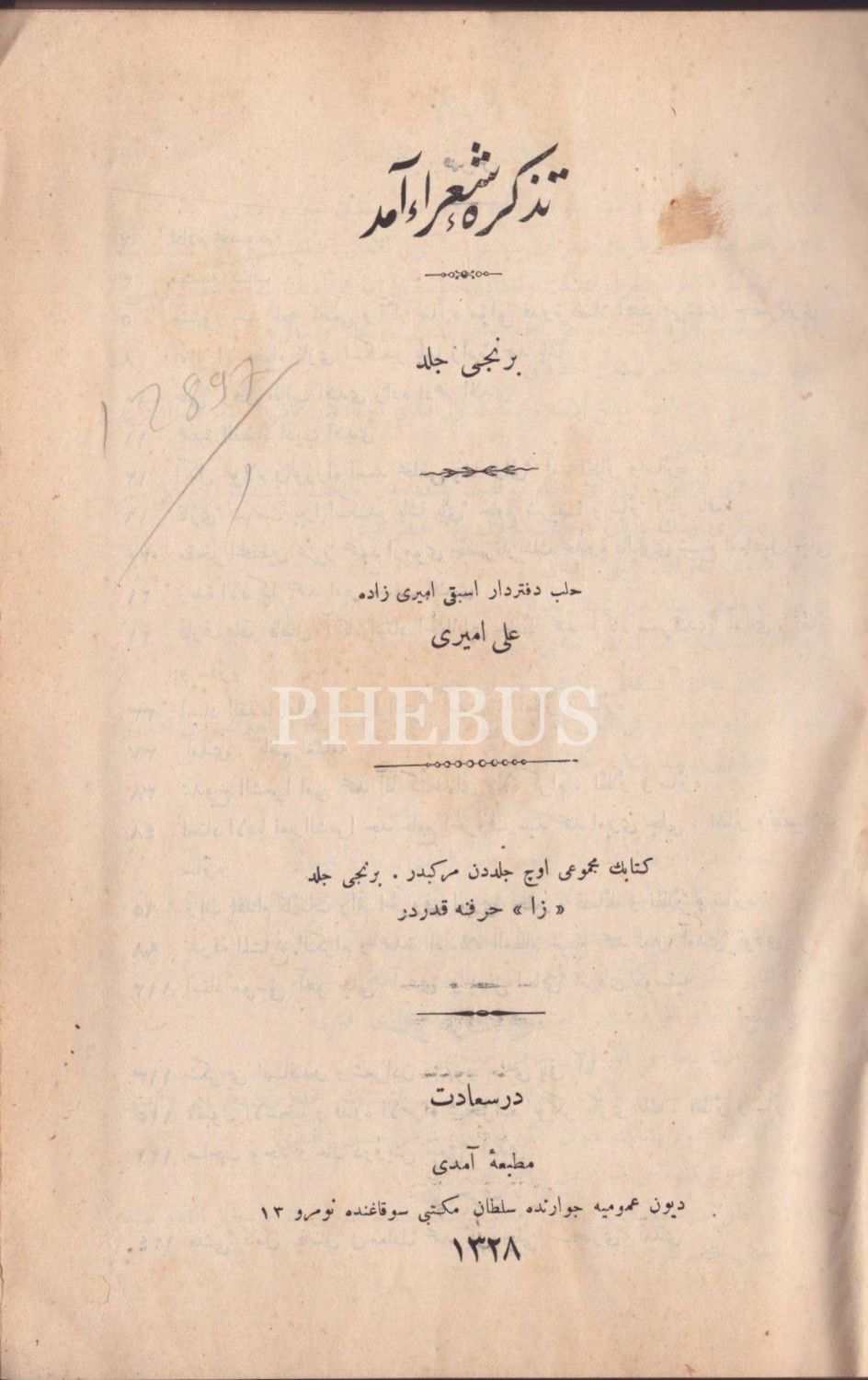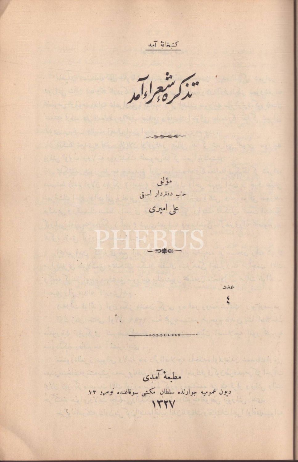 TEZKİRE-İ ŞUÂRÂ-YI ÂMİD, Ali Emiri, Amedi Matbaası, İstanbul 1328, 424 s., 17x24 cm