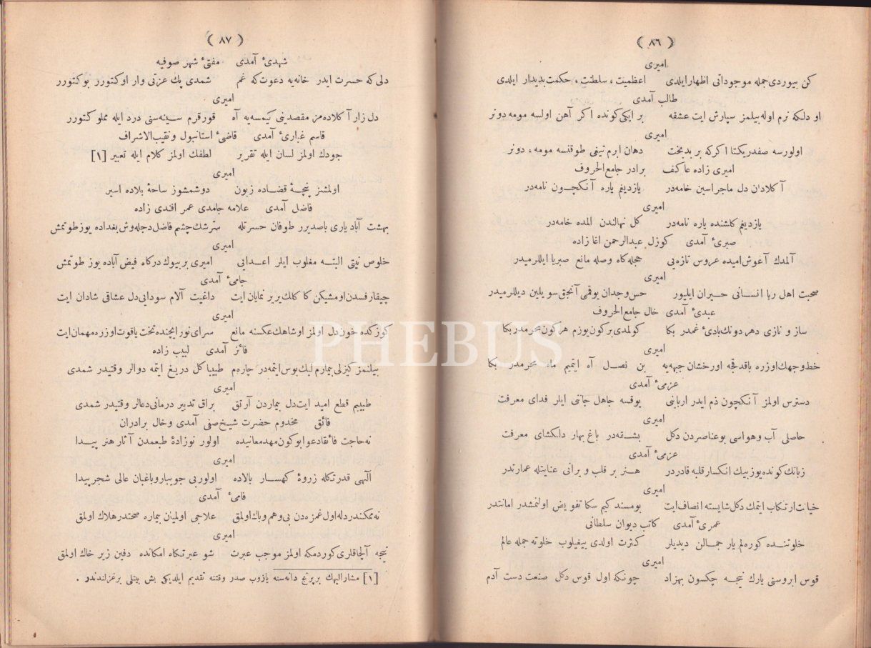 Daha çok topladığı kitaplarla meşhur olan son devir kitap meraklılarından, Millet Kütüphanesi´nin kurucusu Ali Emiri Efendi tarafından kaleme alınan ve Diyarbakır´da yetişen 217 şairin biyografisini içeren bu eserin sadece, 73 şairi içine alan birinci cildi yayımlanmıştır.