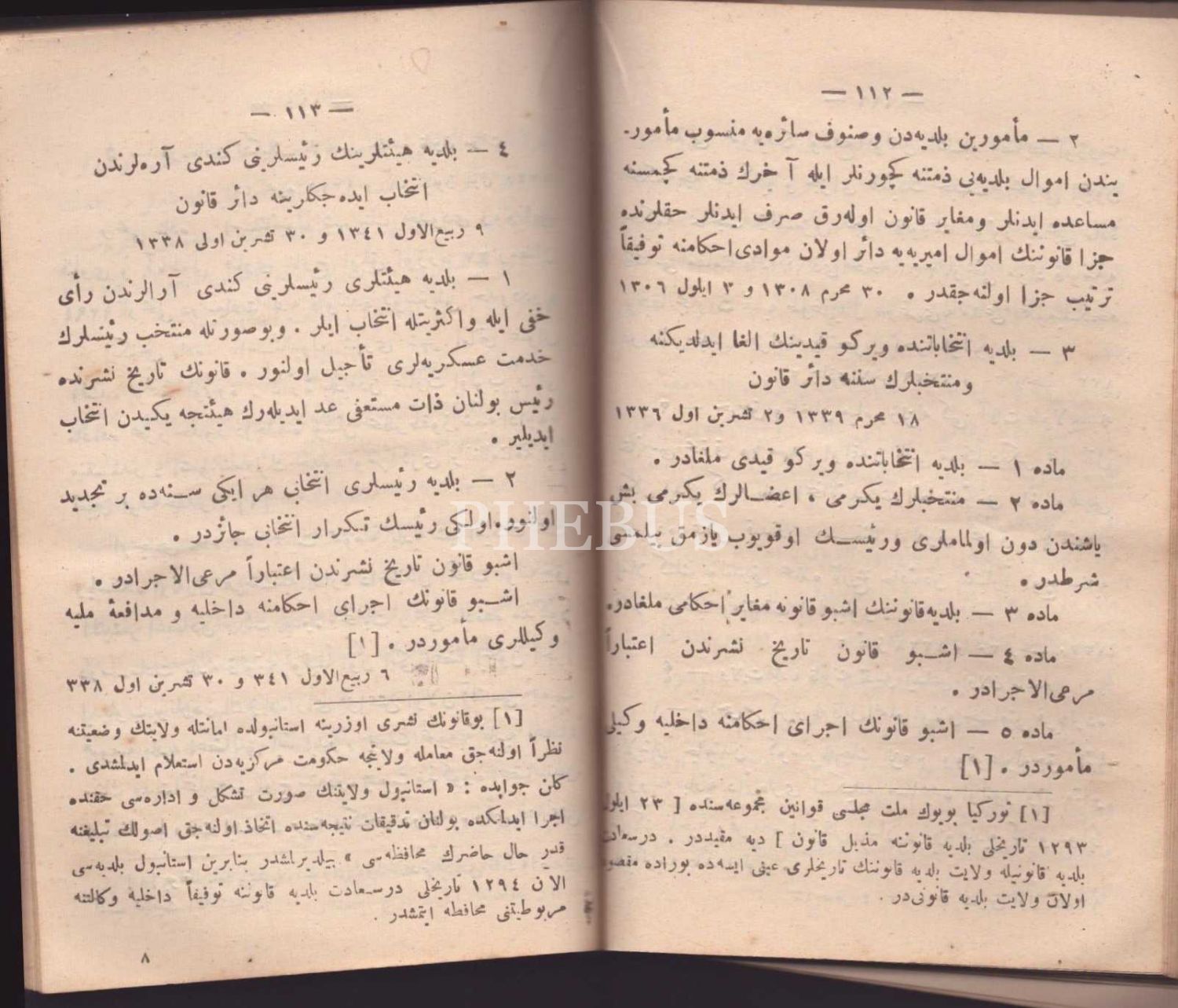 MUHTASAR MECELLE-İ UMÛR-I BELEDİYYE, Bahriye Matbaası, İstanbul 1341, 538 s., 12x17 cm