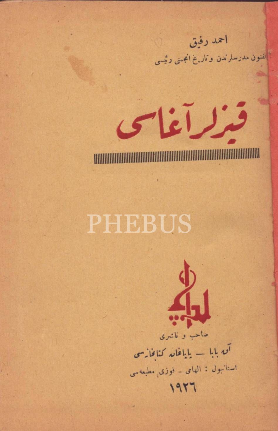 KIZLAR AĞASI, Ahmed Refik, İlhami-Fevzi Matbaası, İstanbul 1926, 166 s., 14x20 cm