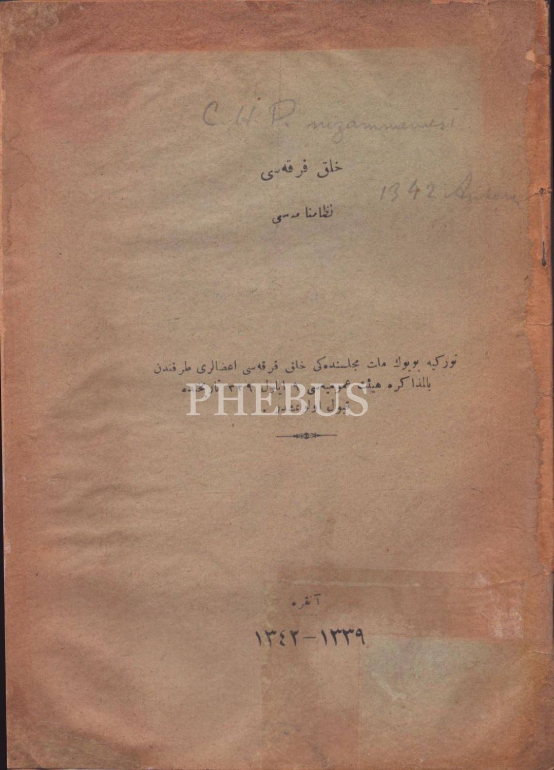 HALK FIRKASI NİZÂMNÂMESİ, Ankara 1342, 17 s., 14x20 cm