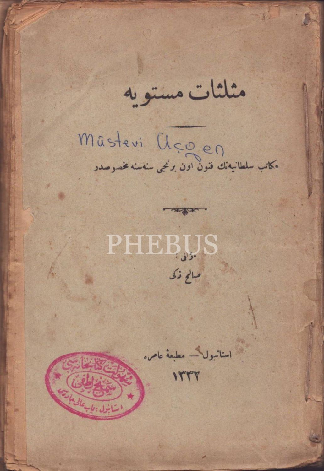 MÜSELLESÂT-I MÜSTEVİYE [Trigonometri], Salih Zeki, Amire Matbaası, İstanbul 1332, 411 s., 14x20 cm