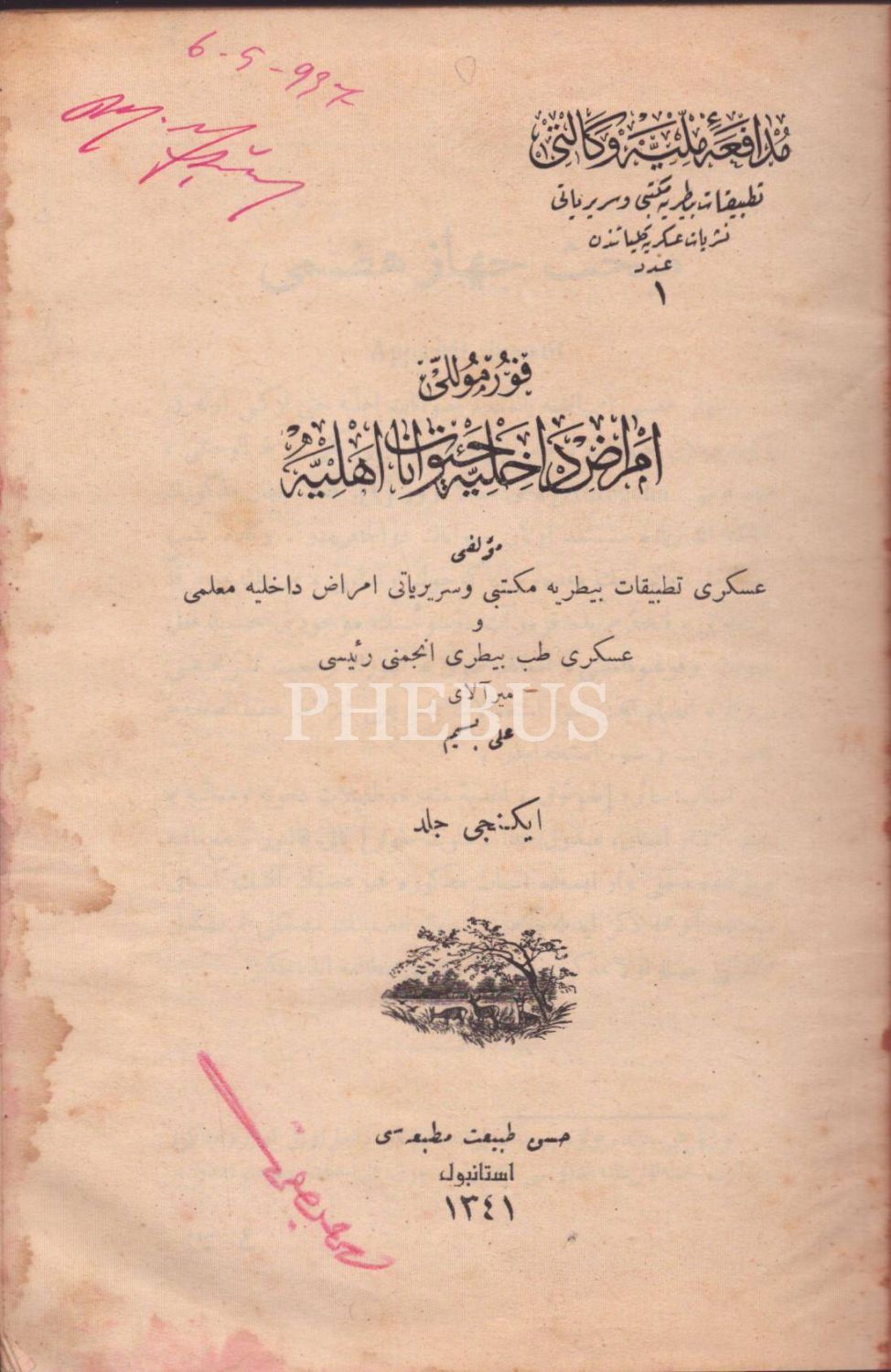 FORMÜLLÜ EMRÂZ-I DÂHİLİYYE-İ HAYVANÂT-I EHLİYYE [Evcil Hayvanların İç Hastalıkları] (2. Cilt), Ali Besim, Hüsn-i Tabiat Matbaası, İstanbul 1341, 330 s., 15x23 cm