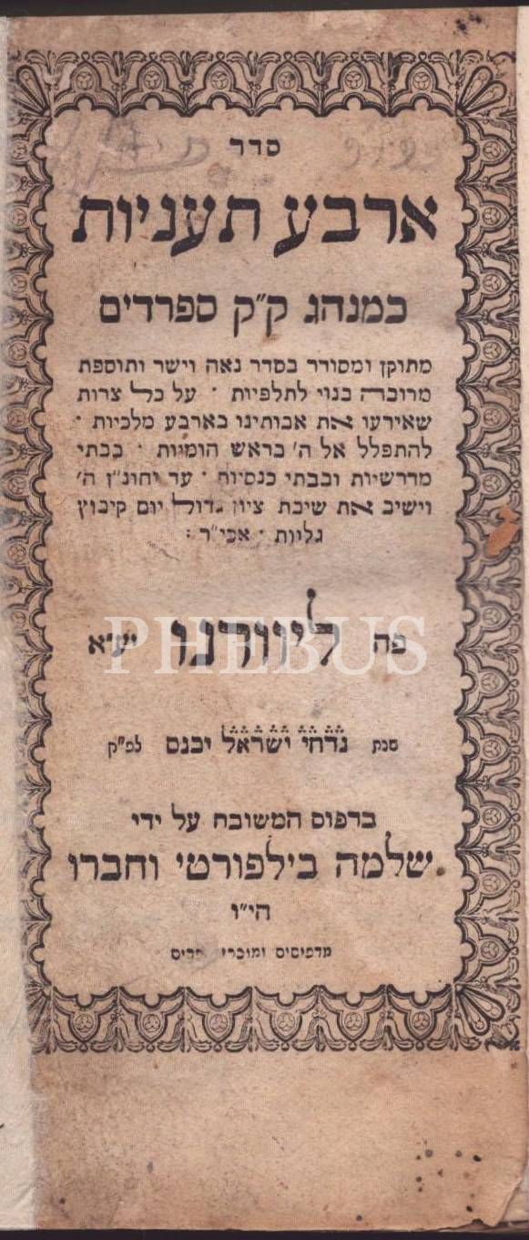Koleksiyoner cildinde SEDER ARBAA TAANİYOT (Asara Betevet, Tish´a Be´Av, Tsom Ester, Shiv´a Asar Be Tamuz), Livorno/İtalya, Shelomo Bilforti Arkadaşları Matbaası, 272 s., 11x17 cm