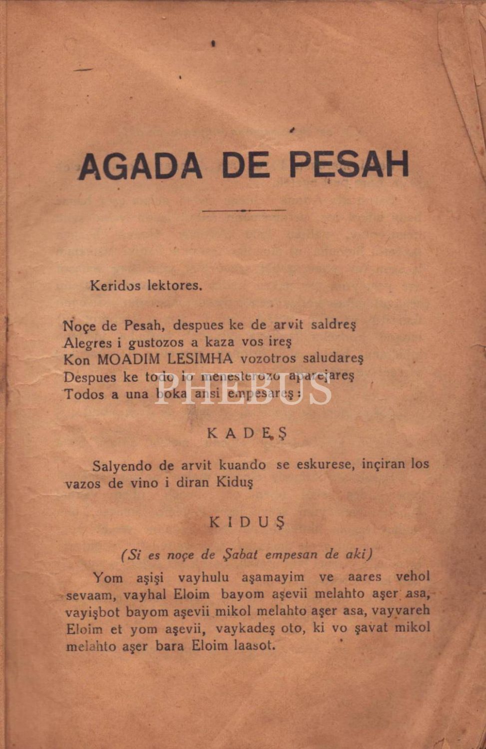 Yahudi Hamursuz Bayramı (Pesah) dua kitabıdır. Latin haflerle yazılmış, İbranice ve Ladino tercümelidir.