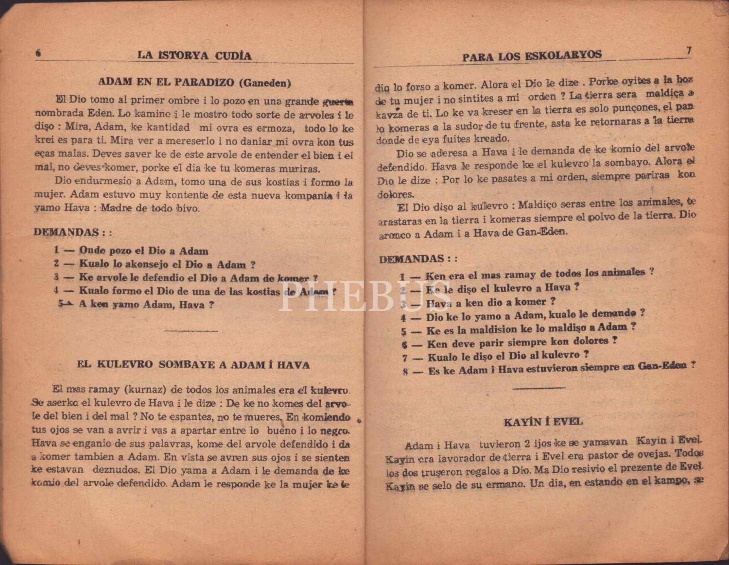 Talebeler için İbrani tarihini dünyanın yaratılışından Musa Peygamber´in ölümüne kadar anlatır. Ladino dilinde yazılıdır.