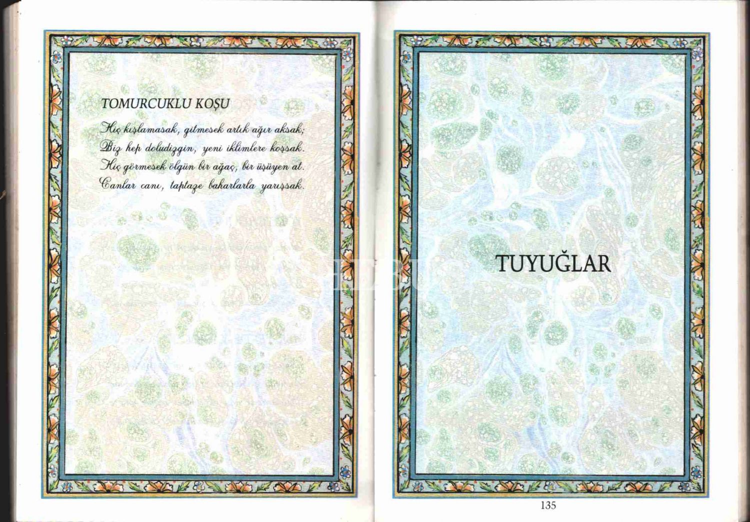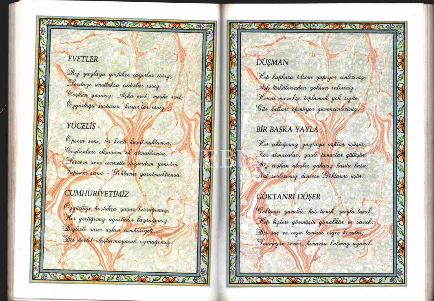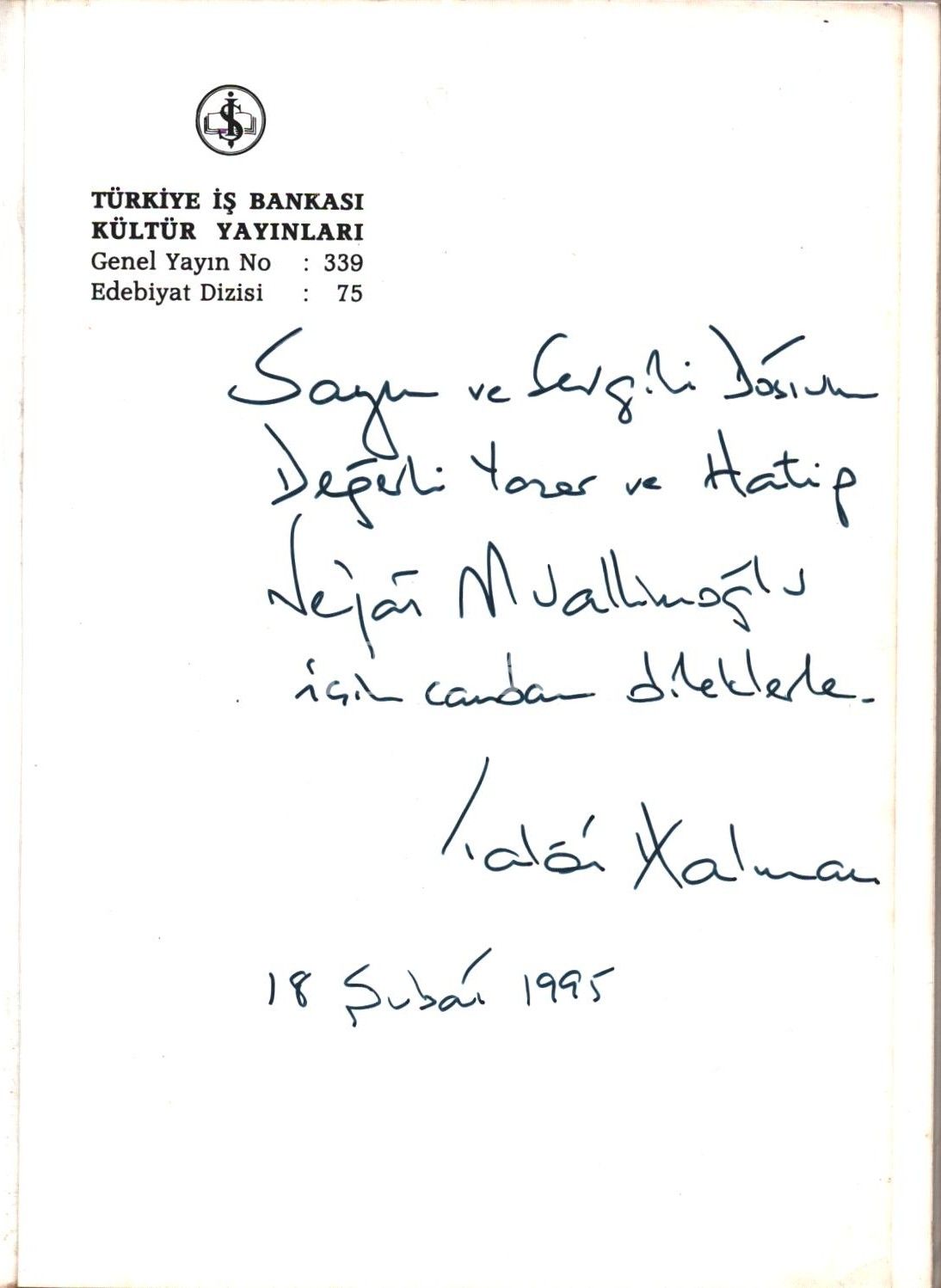 Şair, yazar, çevirmen, akademisyen, diplomat ve siyasetçi Talat Sait Halman´ın (1931 - 2014), ebru desenli, kaliteli kâğıda basılı dörtlükleri… Yazar Nejat Muallimoğlu için imzalanmış.