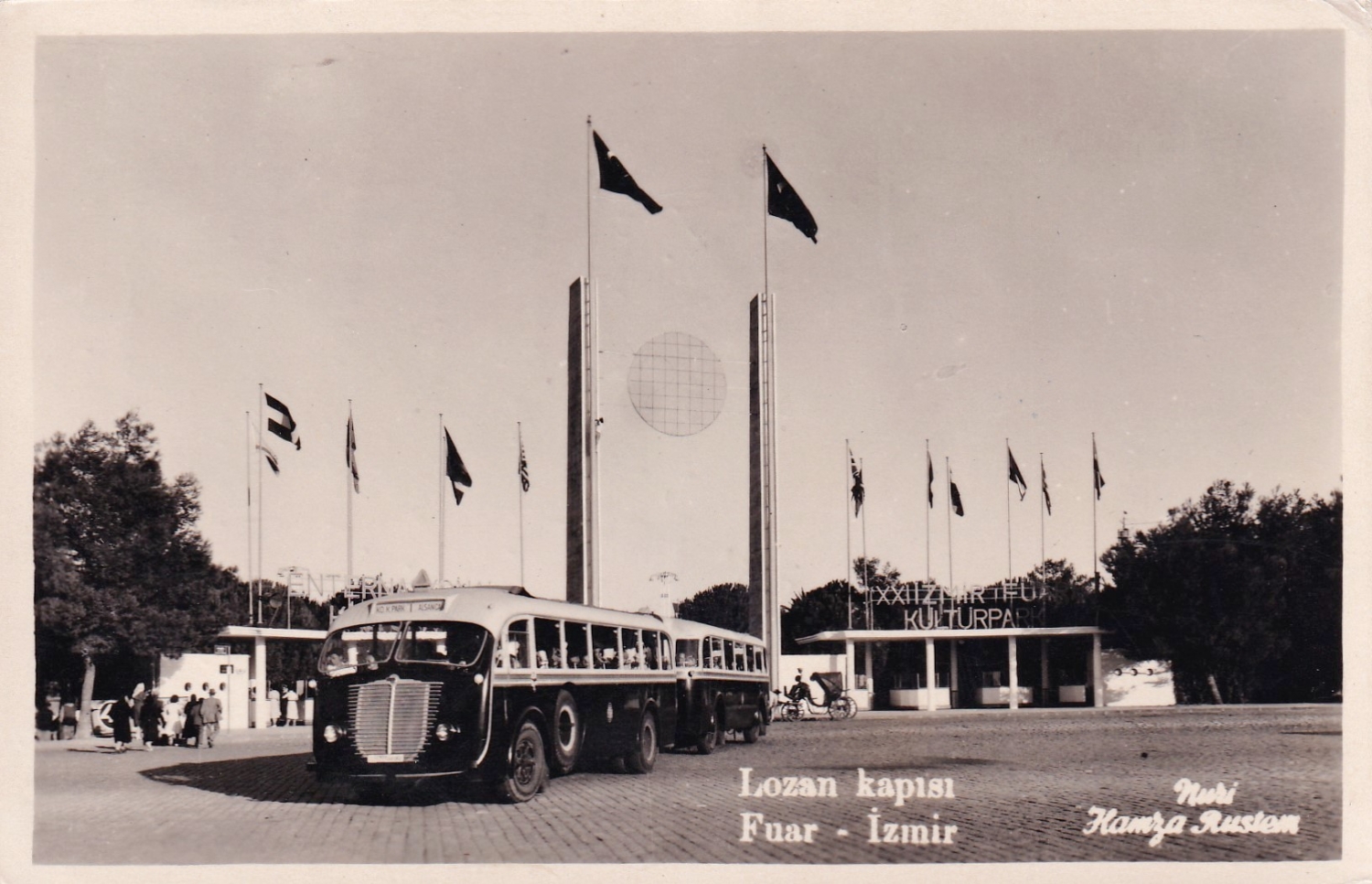 İzmir Fuarı, Lozan Kapısı, "Kültürpark-Alsancak" tabelalı otobüs, Hamza Rüstem