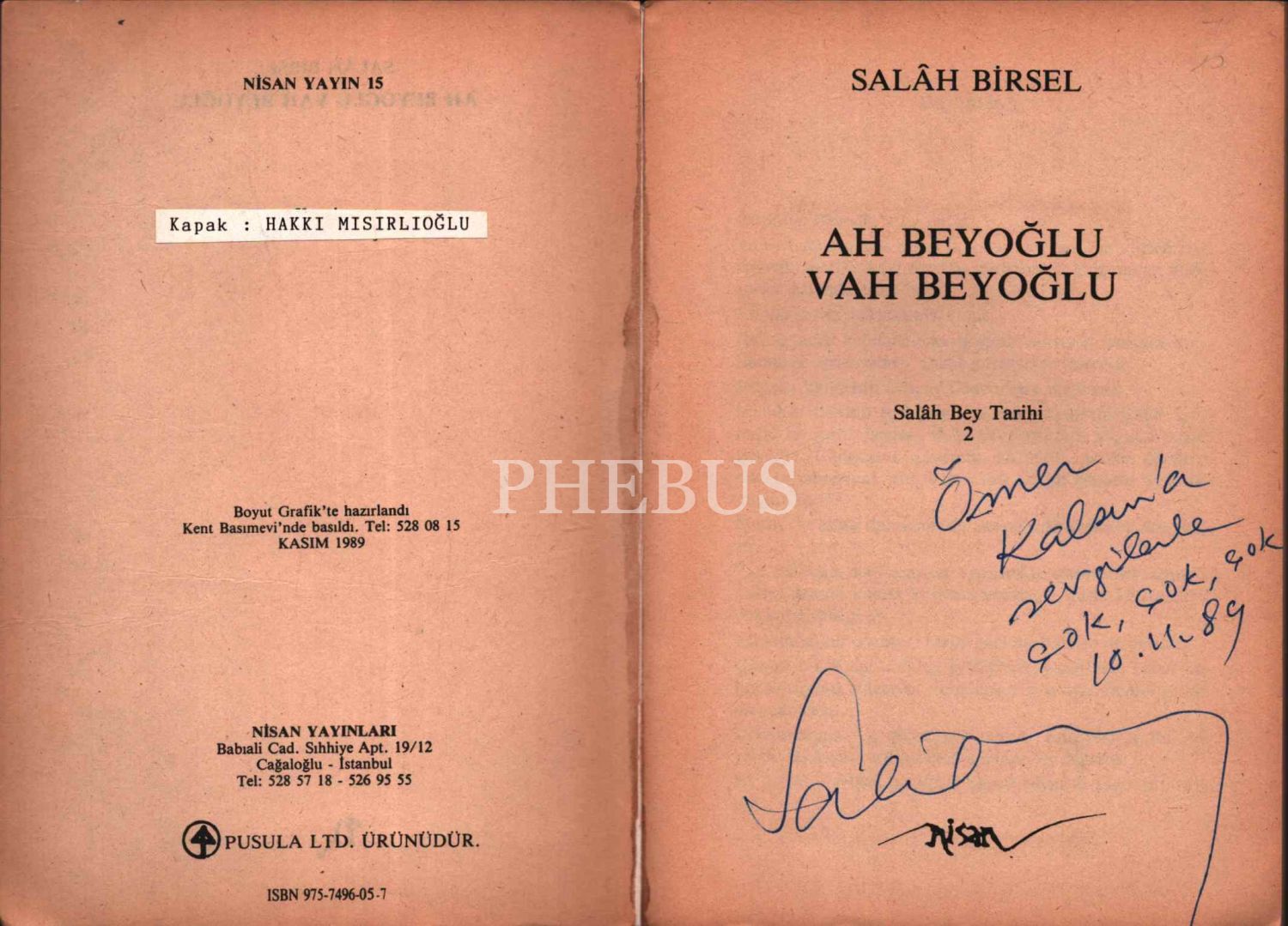 AH BEYOĞLU VAH BEYOĞLU, Salâh Birsel, 1989, Nisan Yayınları, 330 sayfa, 13,5x19,5 cm… İTHAFLI VE İMZALI…
